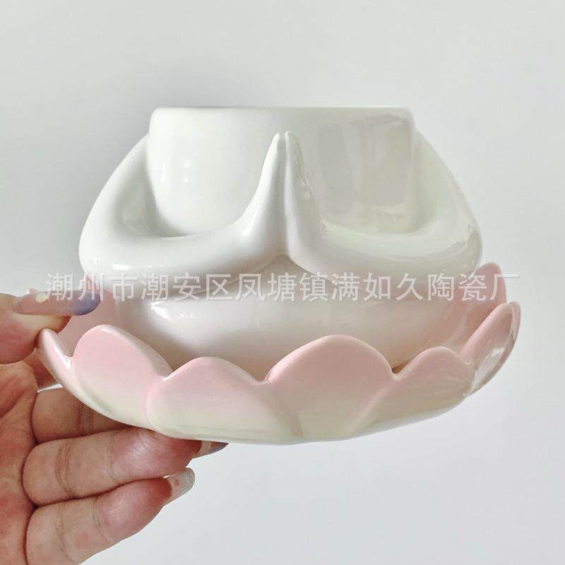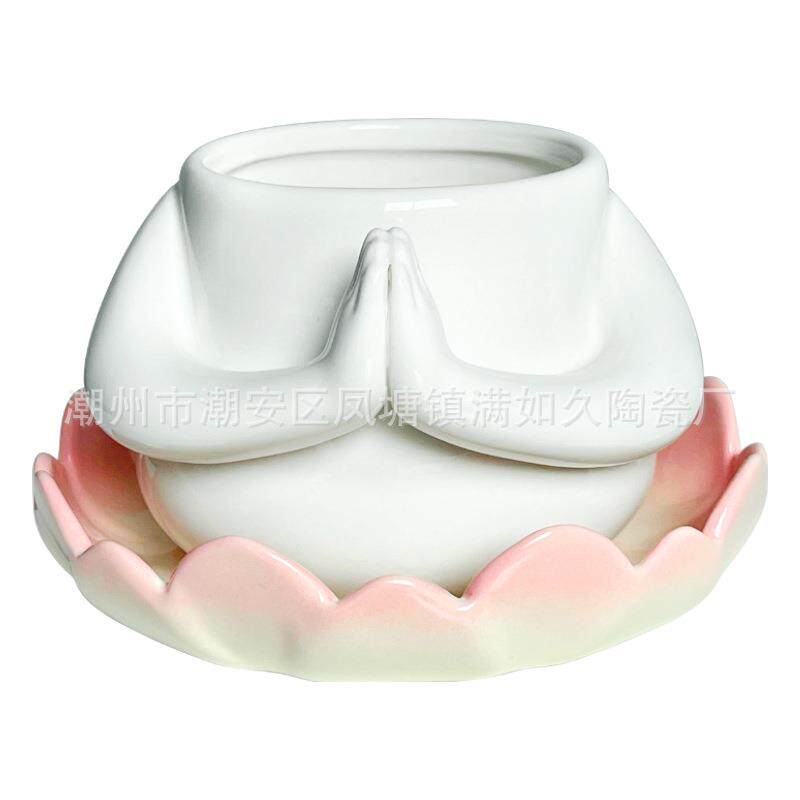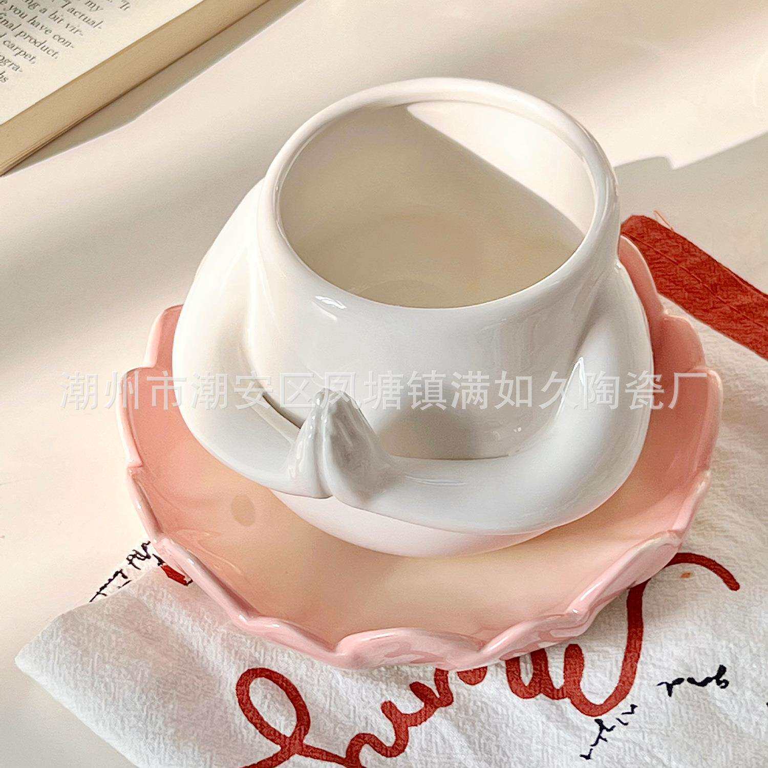 📚 慢如旧-祈祷杯陶瓷佛系莲花杯送礼学生情侣咖啡杯碟创意小众杯子