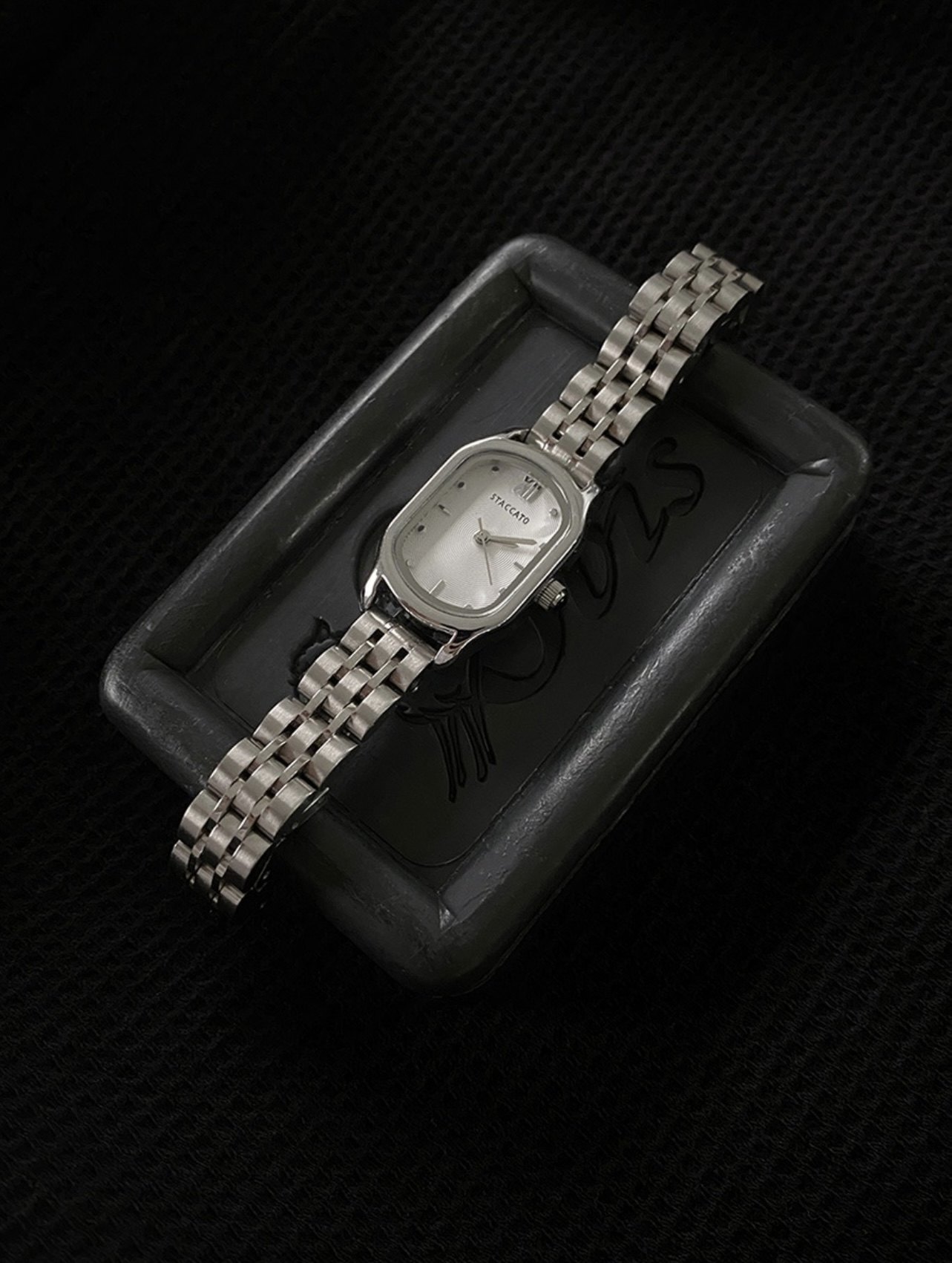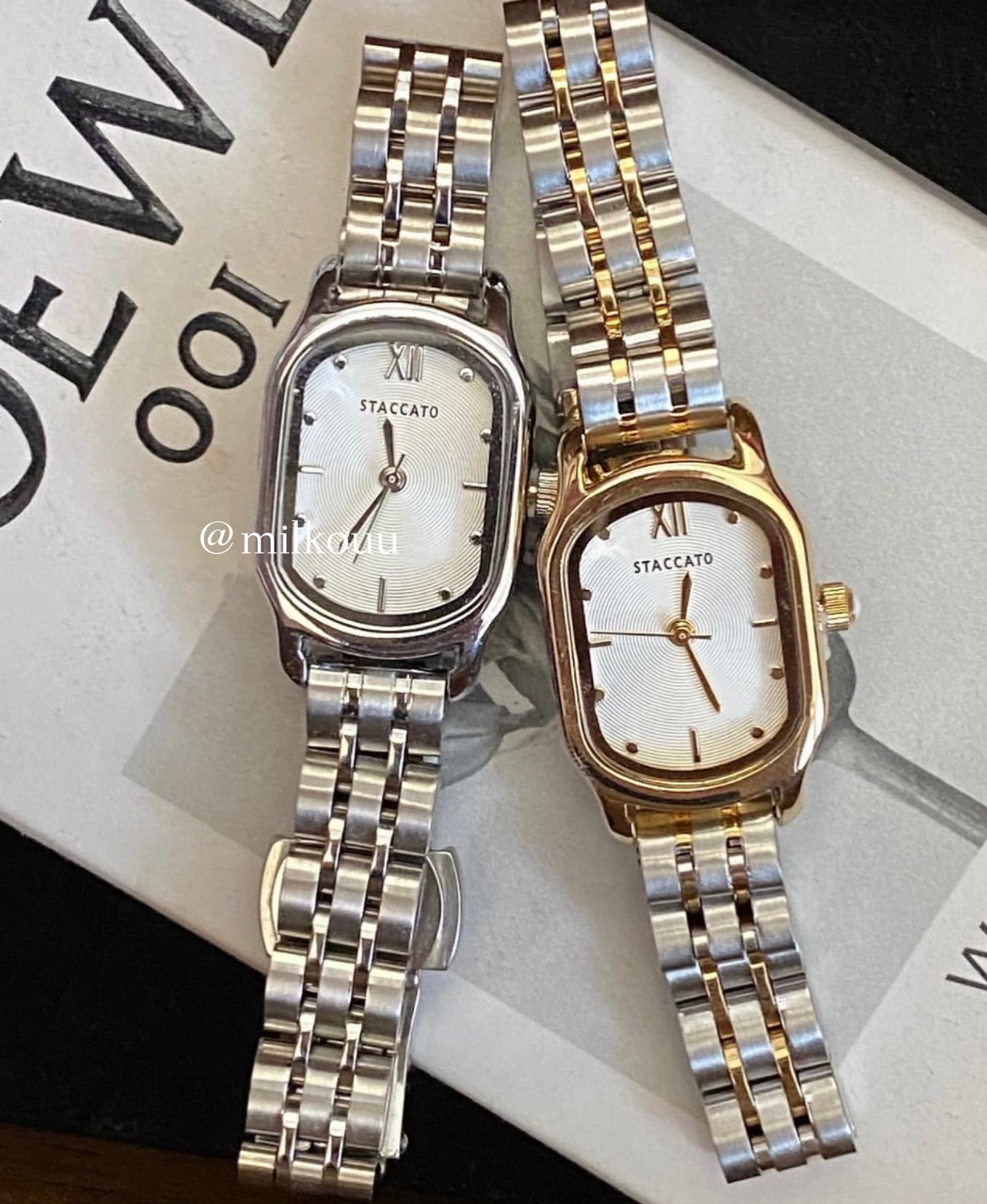 📚 韩国代购 staccato小众高级感时髦复古椭圆表盘钢表带手表腕表