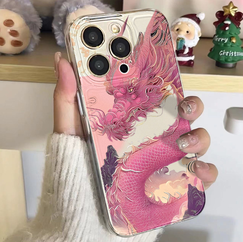 📚 国潮粉紫祥龙适用苹果13手机壳iphone14/15红米k40华为mate60pro卡通nova8荣耀女潮vivox70oppoa93小米保护套