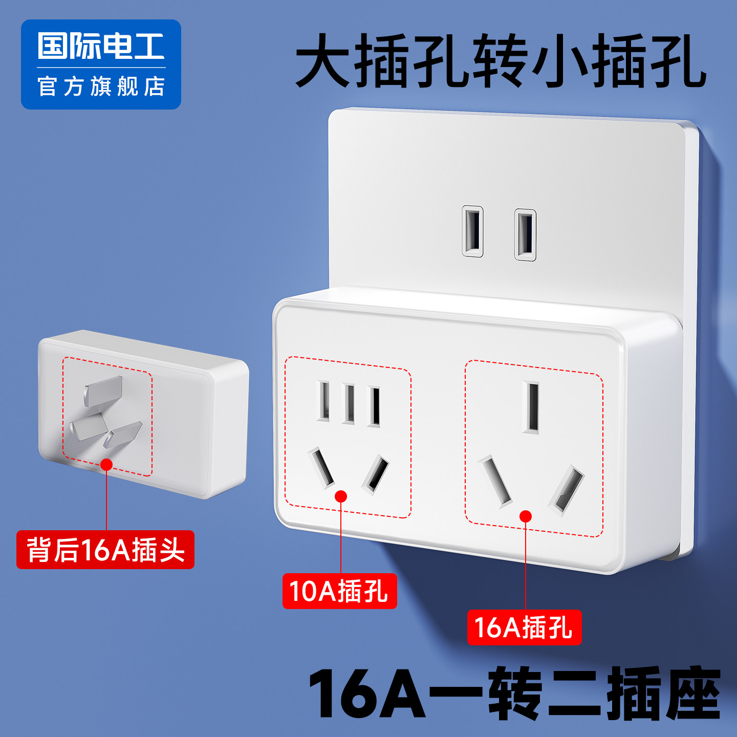 📚 国际电工16A插座转换器 16转10A转换插头大功率空调 热水器一转二