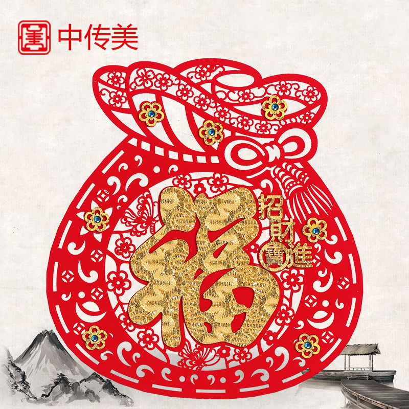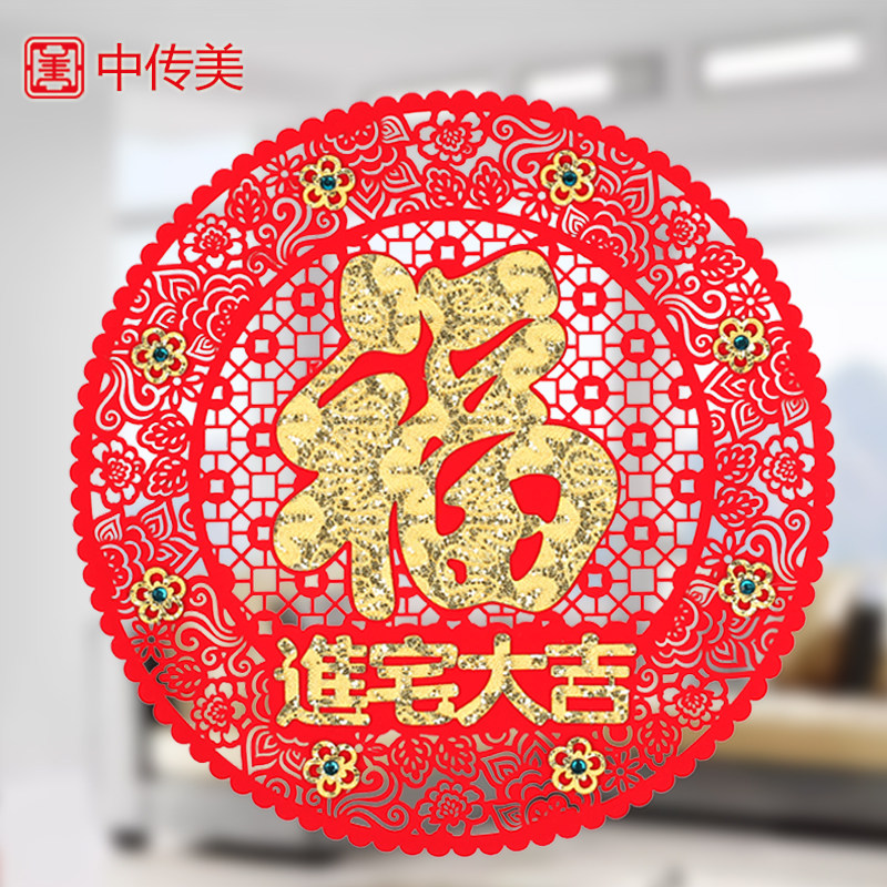 📚 搬新家门上装饰绒布福字斗方春节门贴乔迁新居福贴剪纸玻璃窗花贴