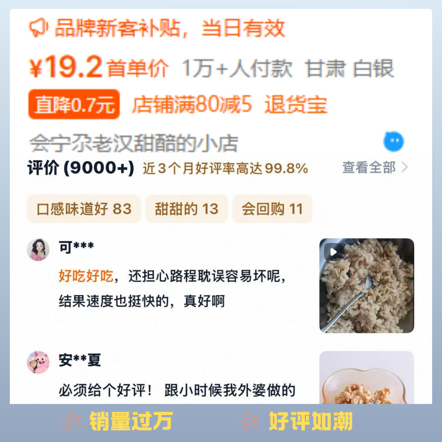 79¥ HU108 M6qJUmmlYIu¥ https://m.tb.cn/h.7wklMaF 会宁尕老汉甜胚子甘肃兰州特产燕麦甜醅子奶茶商用袋装甜坯子2斤 --------------------- 【原售价】25.8元 【现售价】19.9元。