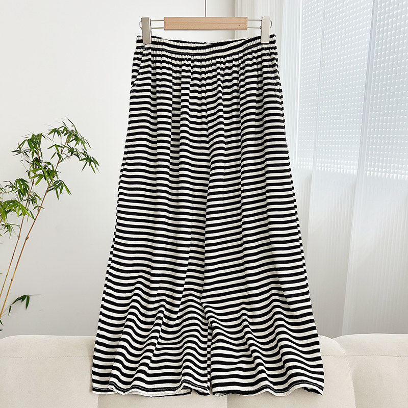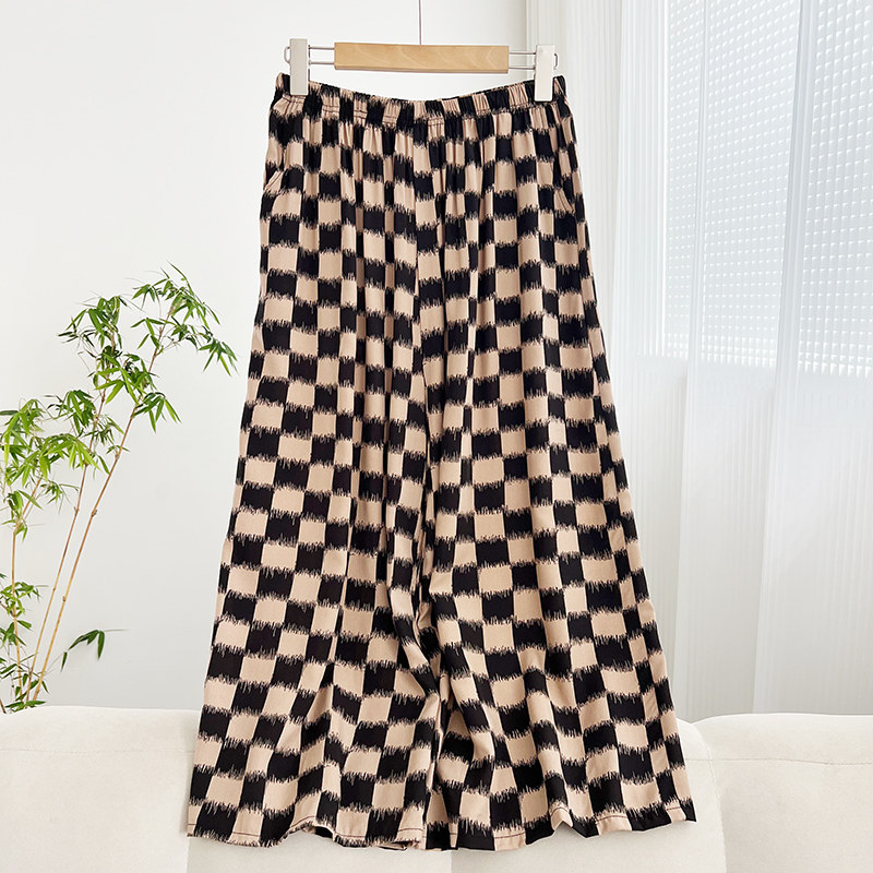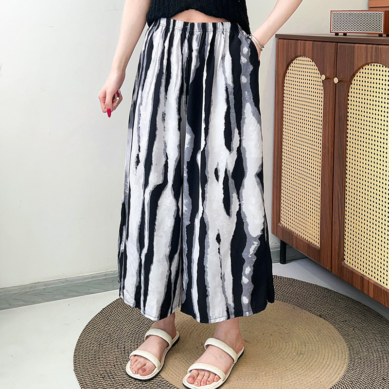 📚 夏季棉绸阔腿裤女加大码宽松九分女裤印花高腰人造棉微胖薄款裙裤