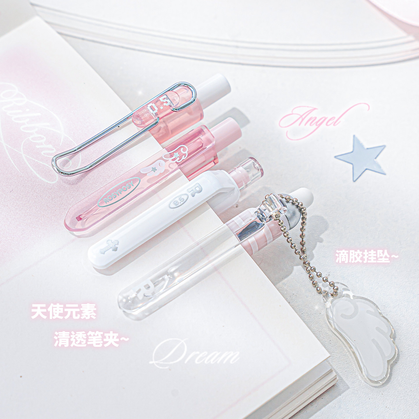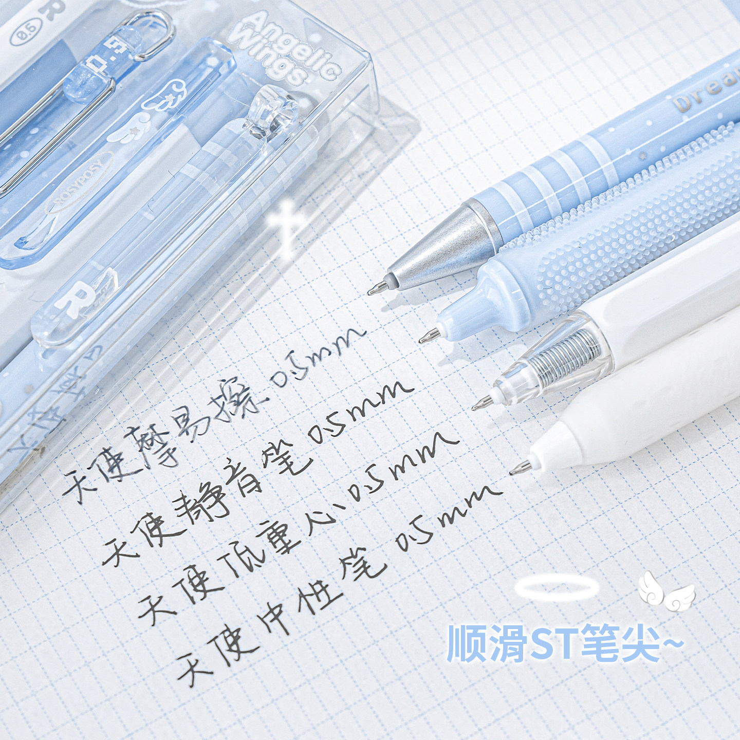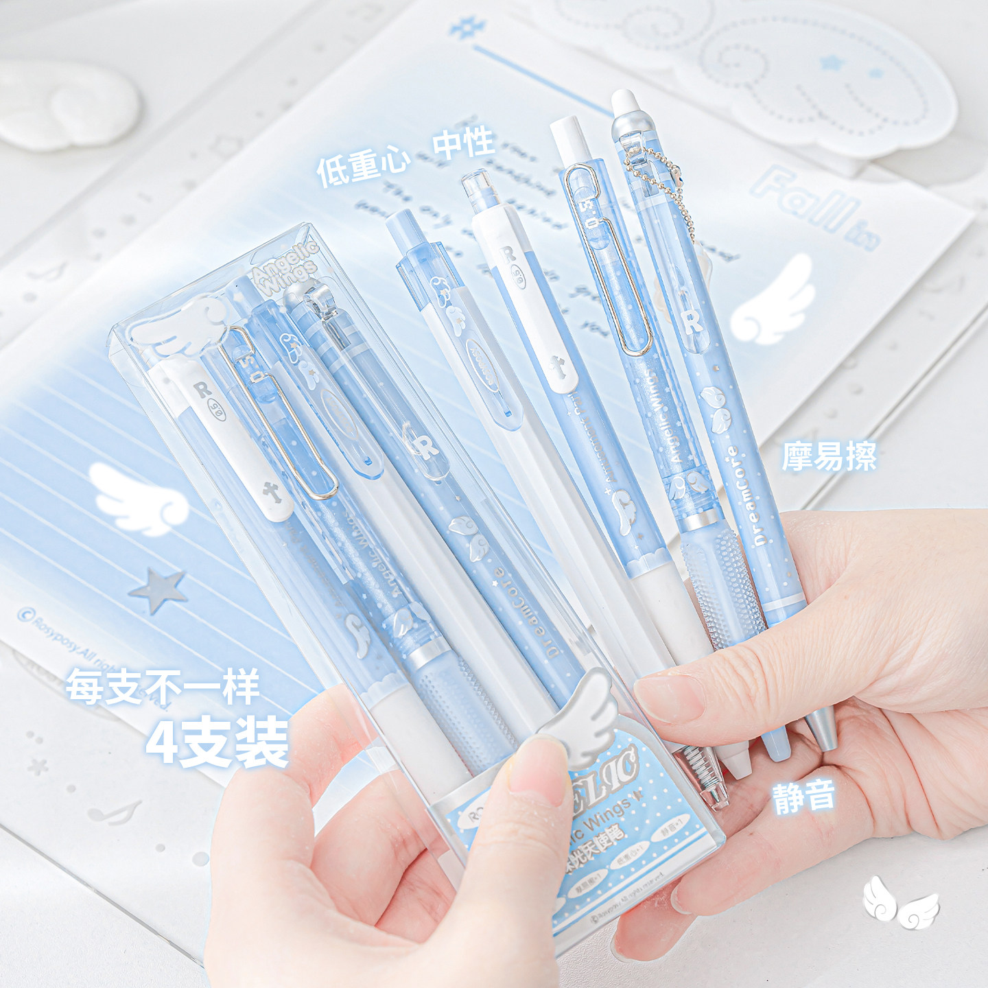 📚 RosyPosy柔设中性笔珠光天使笔按动中性笔黑色0.5mm签字笔可擦笔高颜值ins风刷题笔黑笔速干顺滑学生学习文具
