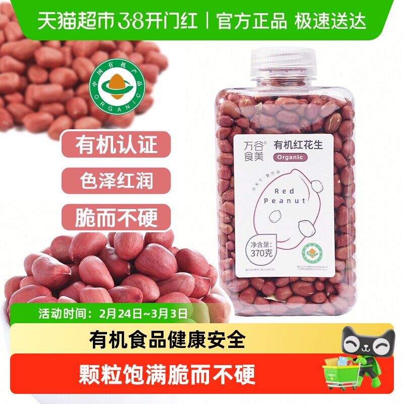 📚 万谷食美有机红花生370g东北红皮花生米当季新粮去壳花生仁