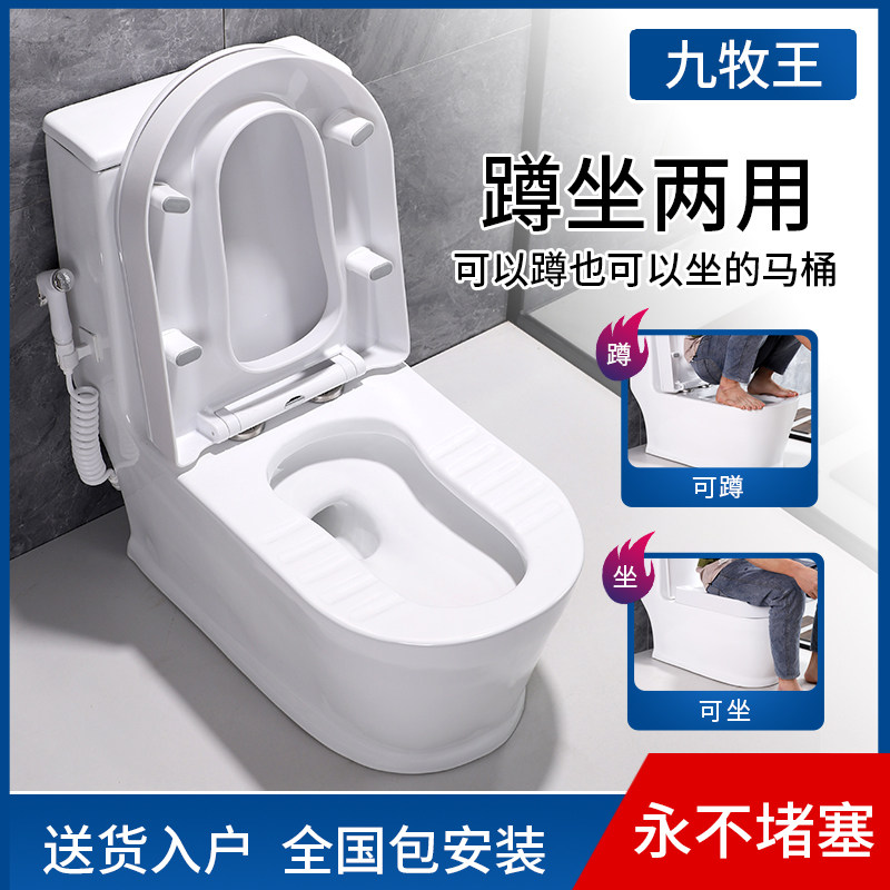 📚 蹲坐两用马桶蹲便器一体式可蹲可座坐便器双用蹬坐厕二合一虹吸式