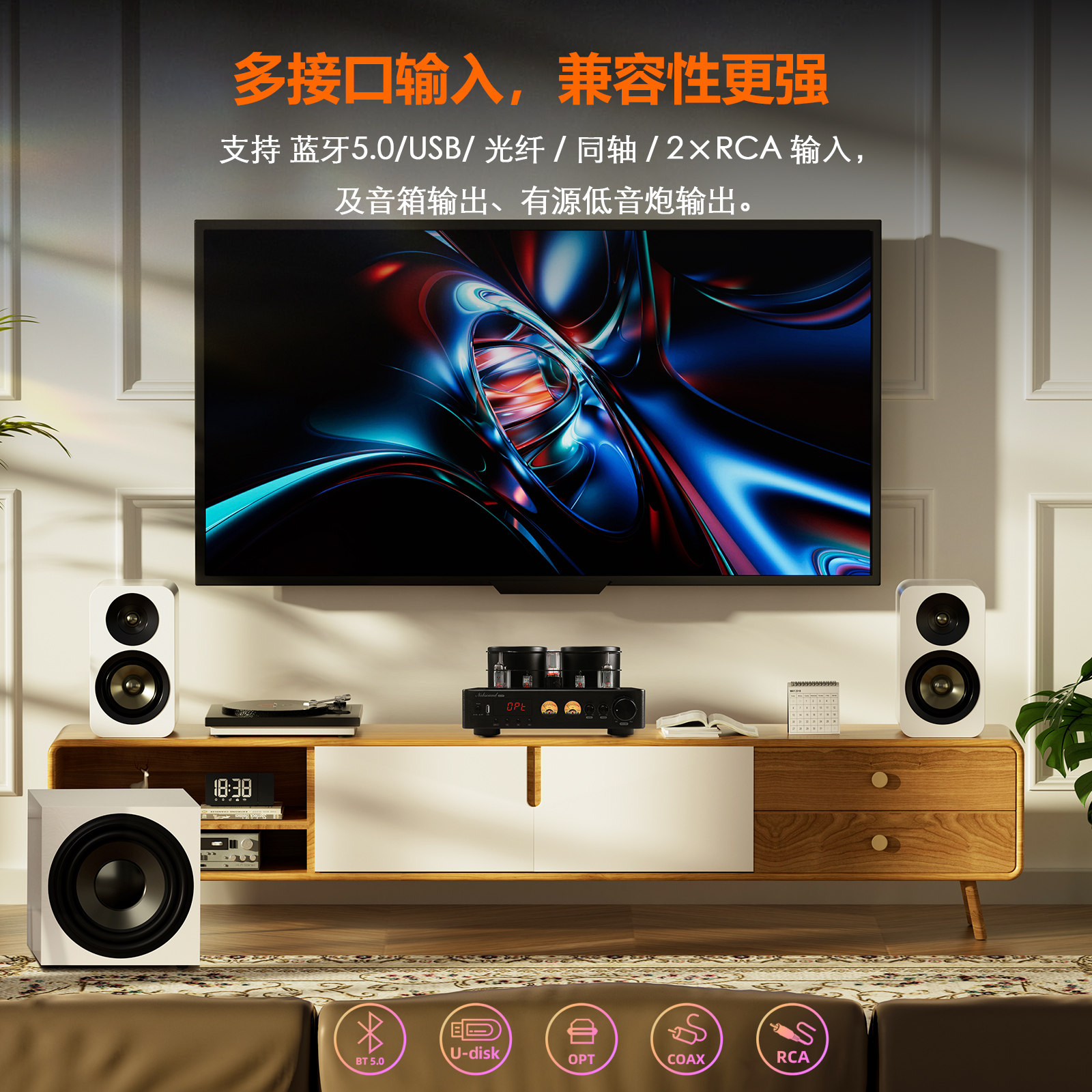 📚 复古蓝牙5.0胆机电子管功放USB DAC 光纤同轴全解码一体机带耳放