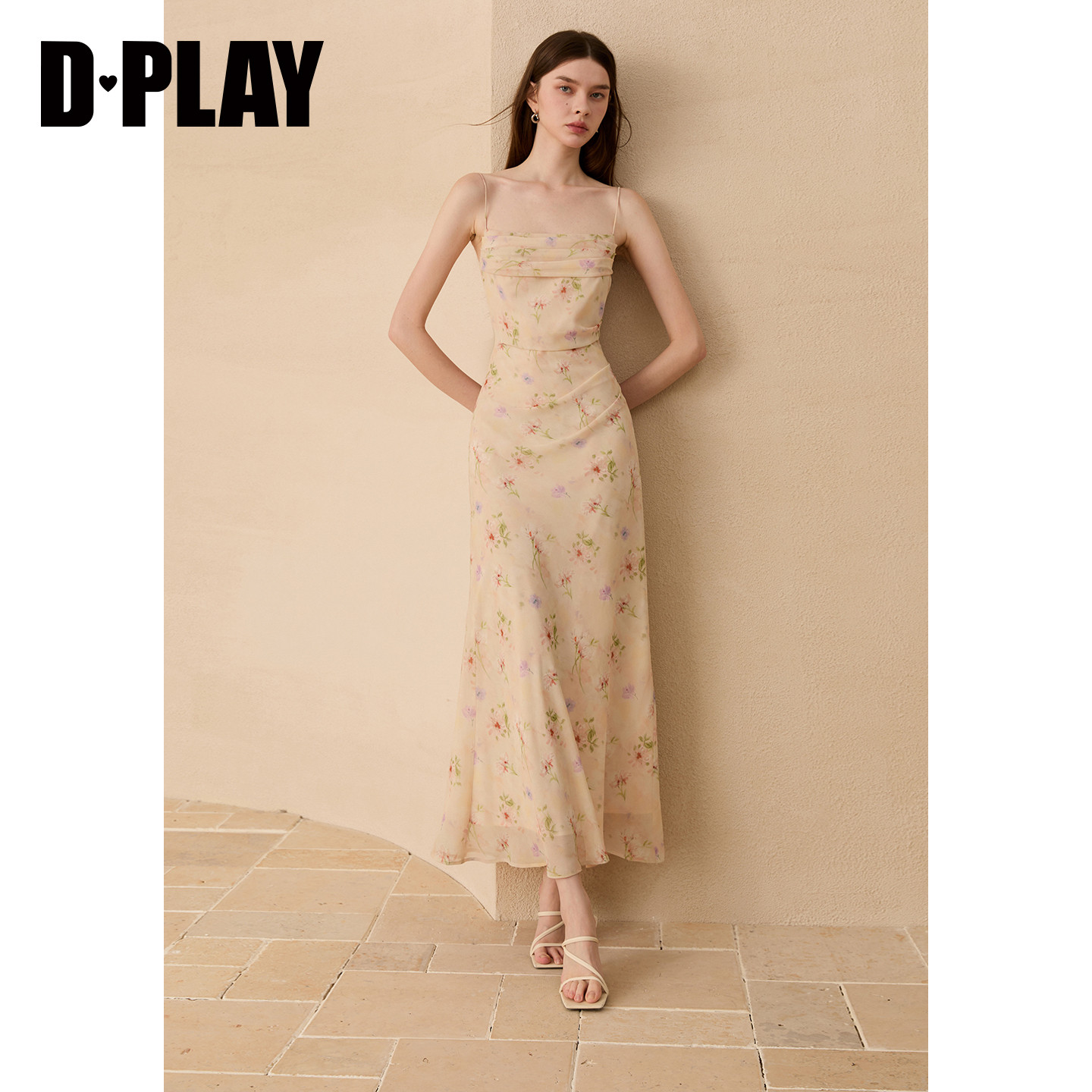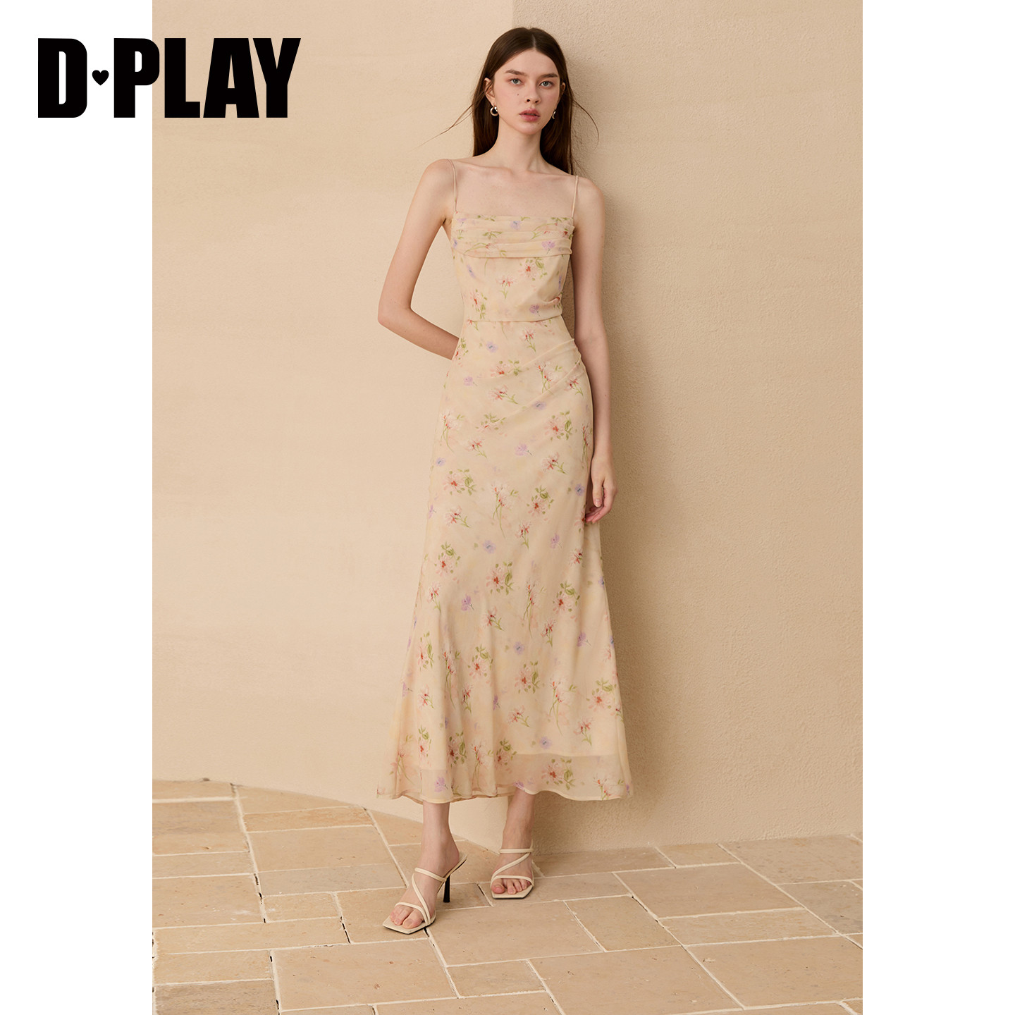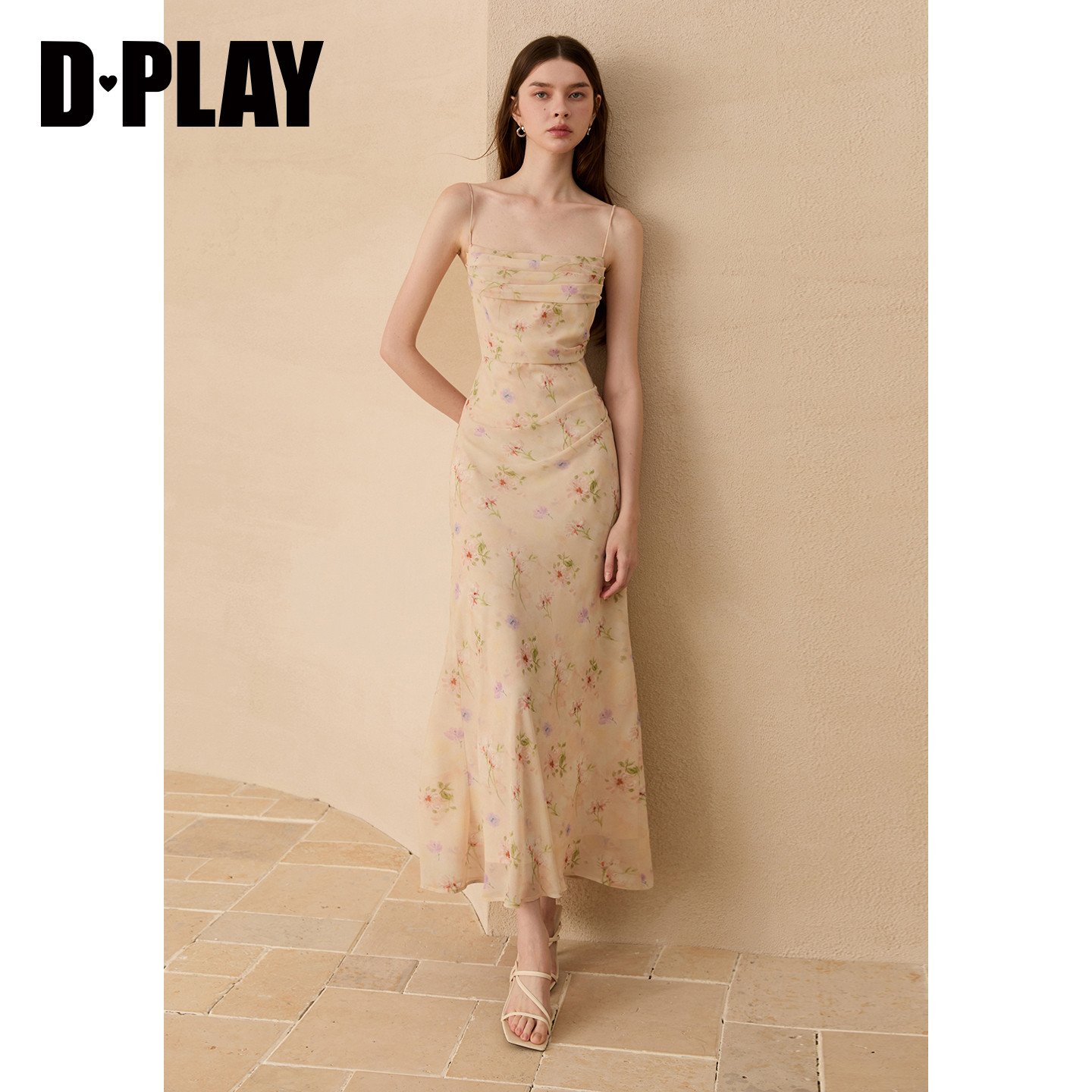 📚 DPLAY【度假系列】黄色印花吊带连衣裙女法式长裙2026年夏季新款