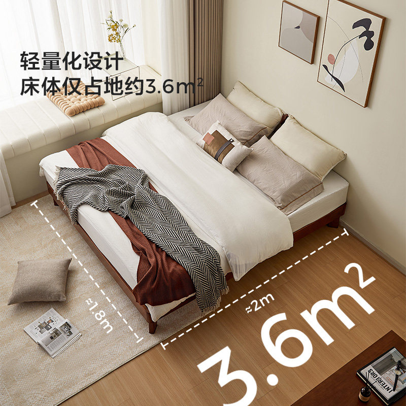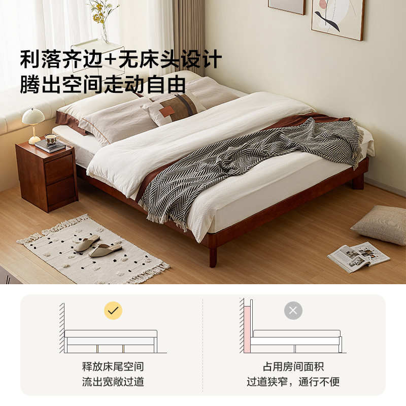 📚 林氏家居官方中复古无床头全实木床1米5排骨架双人床新款林氏木业
