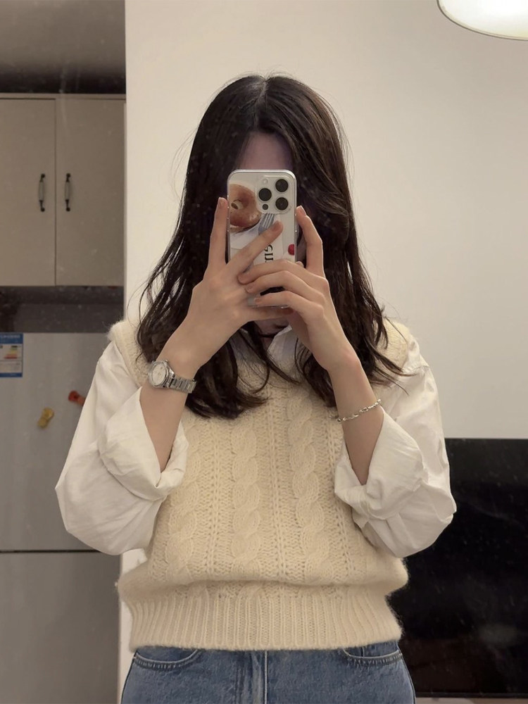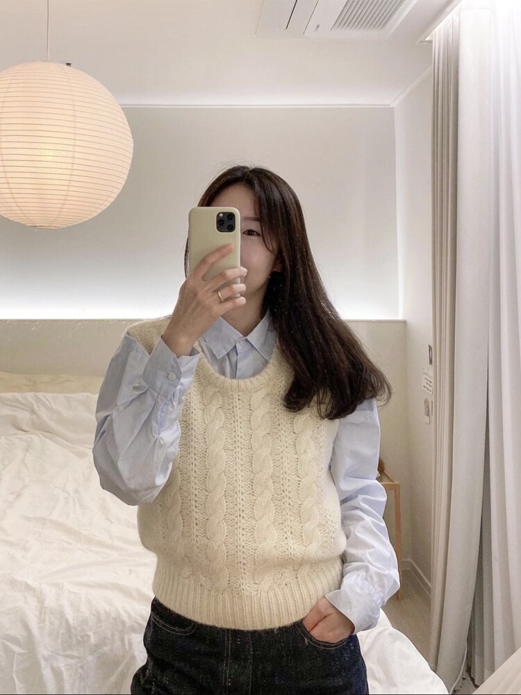 📚 【现货】Thebarnnet韩国八奶麻花针织衫马甲圆领无袖毛衣外穿背心