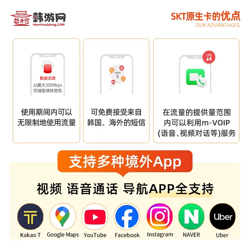 📚 韩国SKT高速5G流量卡机场自取无限流量电话卡本地原生旅游上网卡