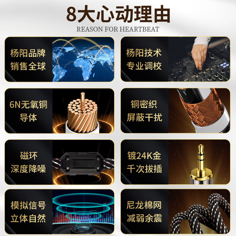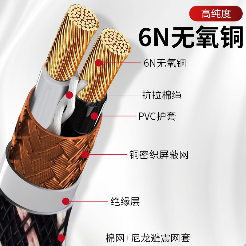 📚 杨阳6N无氧铜3.5转6.5音频线纯铜aux电脑调音台音箱电吉他连接线