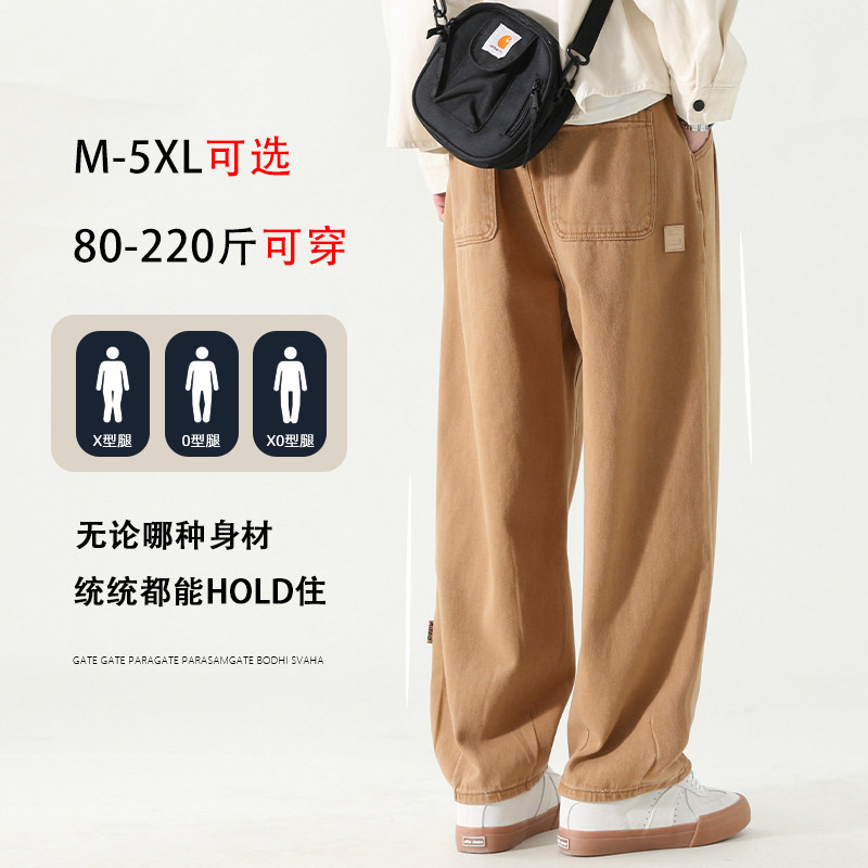 📚 夏季休闲新款纯色松紧腰宽松大码直筒阔腿裤工装裤男士长裤哈伦裤