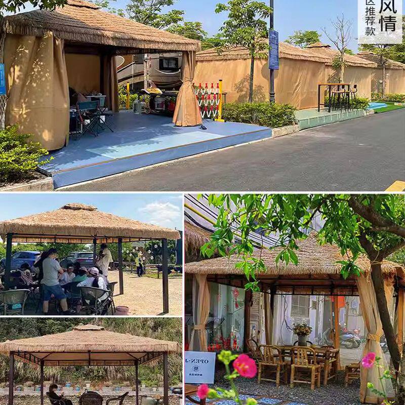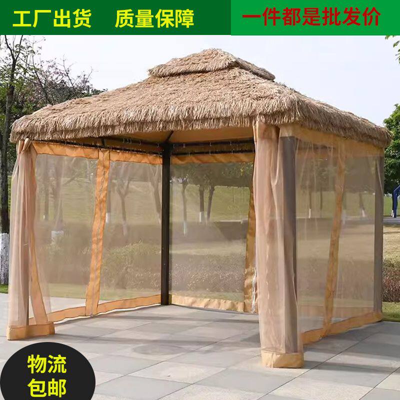 📚 防雨餐饮休闲遮阳凉亭仿真茅草屋庭院农家乐露天毛草棚四角茅草亭