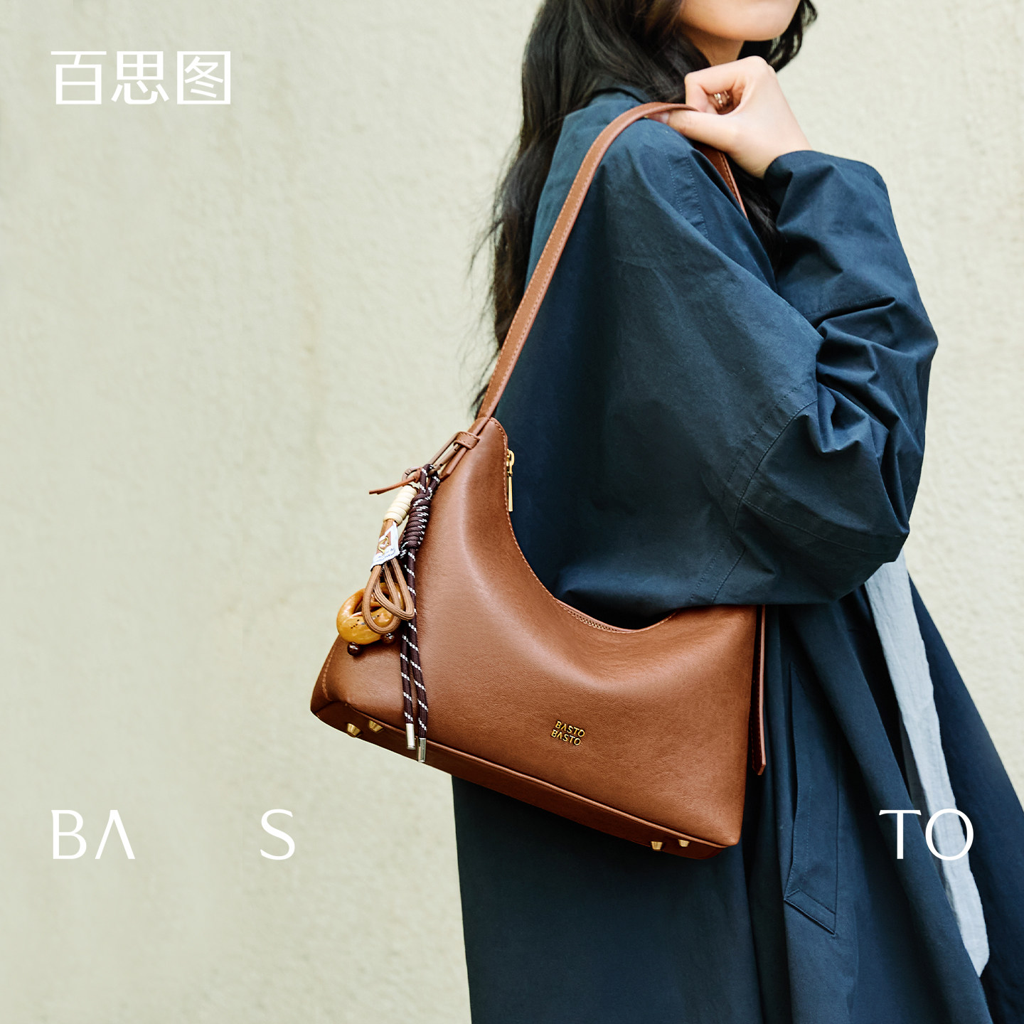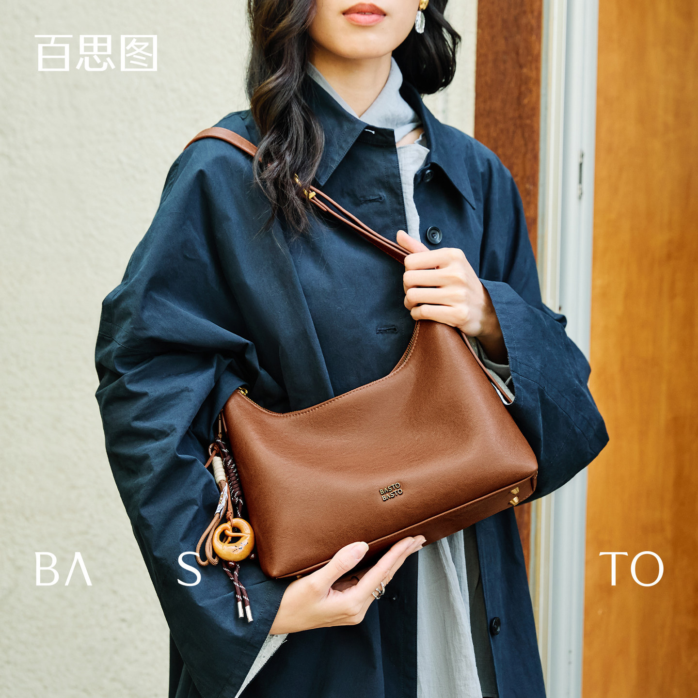📚 百思图包包女士2026新款斜挎包女高级感腋下包单肩真皮女包hobo包