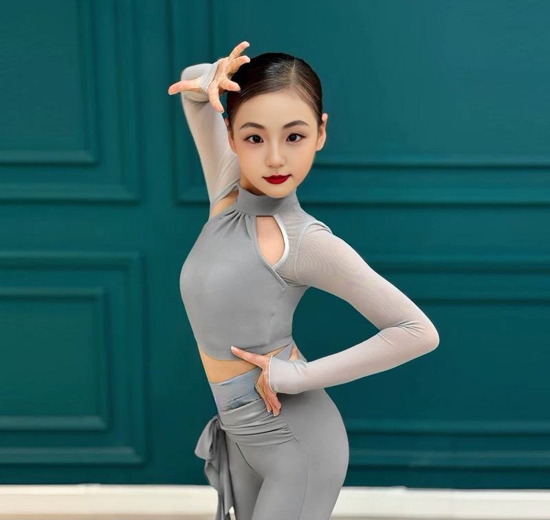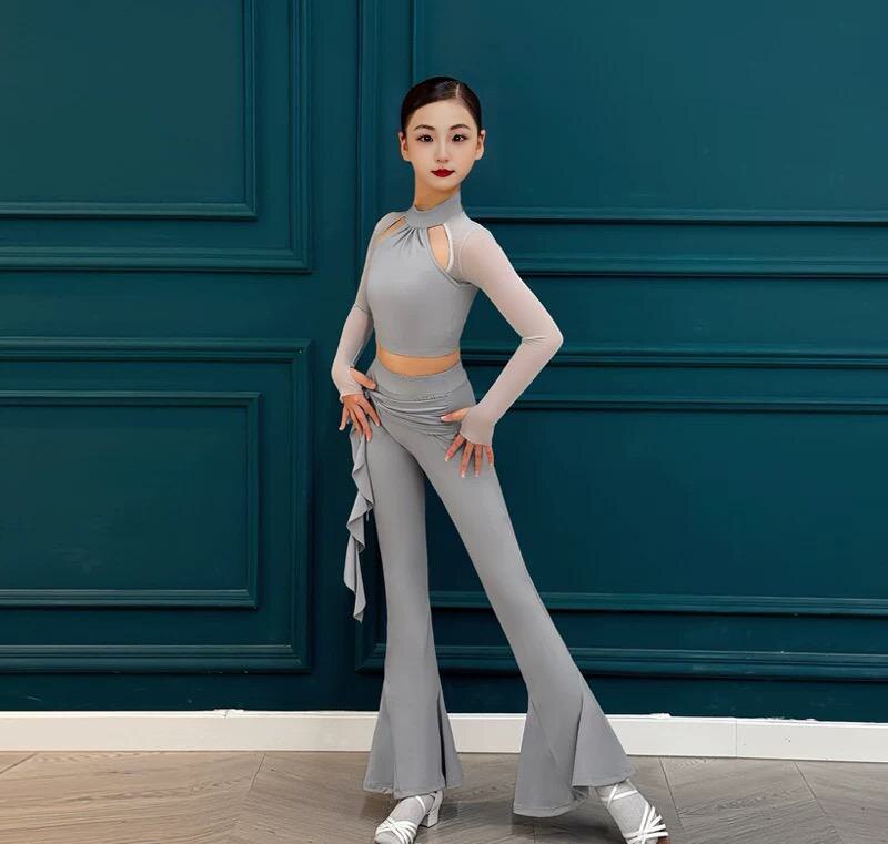 📚 儿童专业国标摩登拉丁舞裤秋冬练功服女式跳舞专用裤子舞蹈阔腿裤