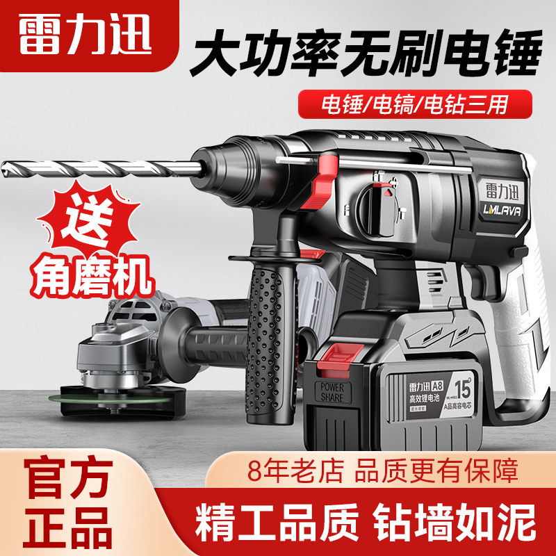 📚 雷力迅电锤电镐电钻多功能冲击钻电钟混凝土工业级大功率锂电捶搞