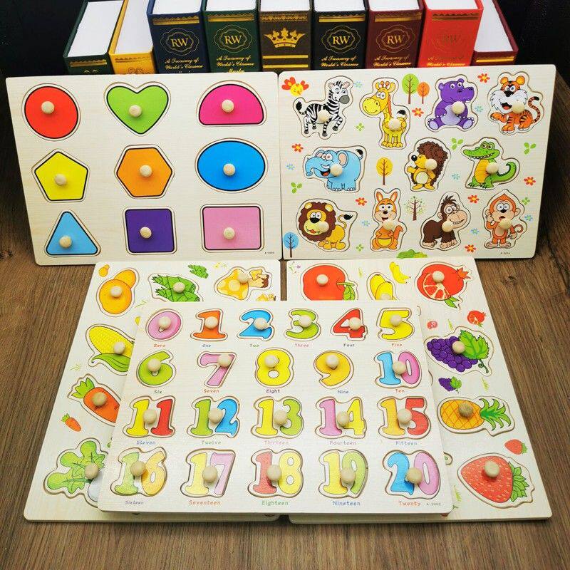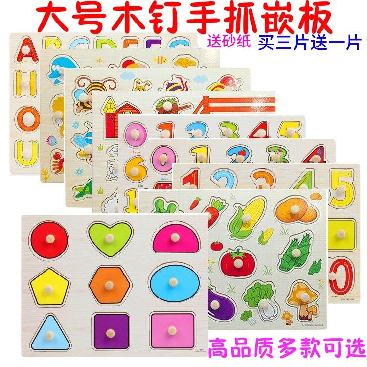 📚 木制儿童认知形状配对拼板手抓板嵌板拼图动物 2-3-4岁宝宝玩具