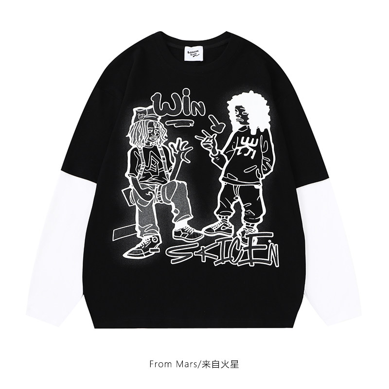 📚 From Mars 到底在拽什么 潮牌卡通人物印花卫衣假两件宽松长袖T恤