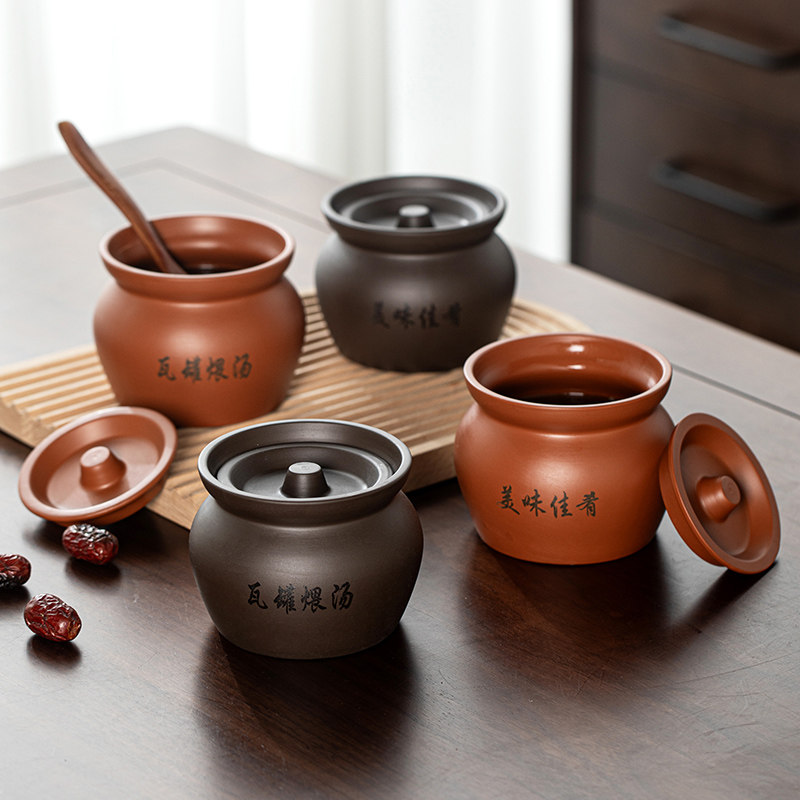 📚 瓦罐炖盅隔水炖带盖汤蒸蛋炖罐朱雀汤罐沙县陶瓷煨汤汤盅人份紫砂
