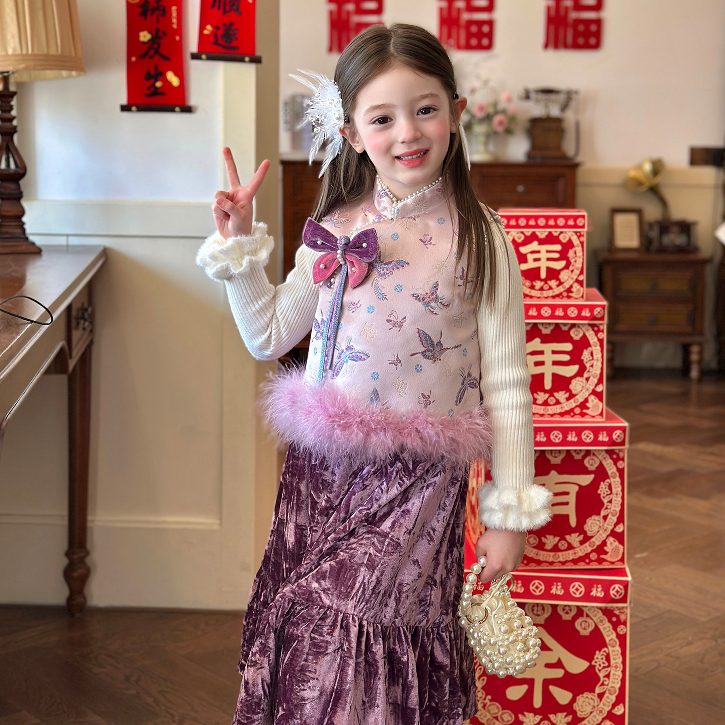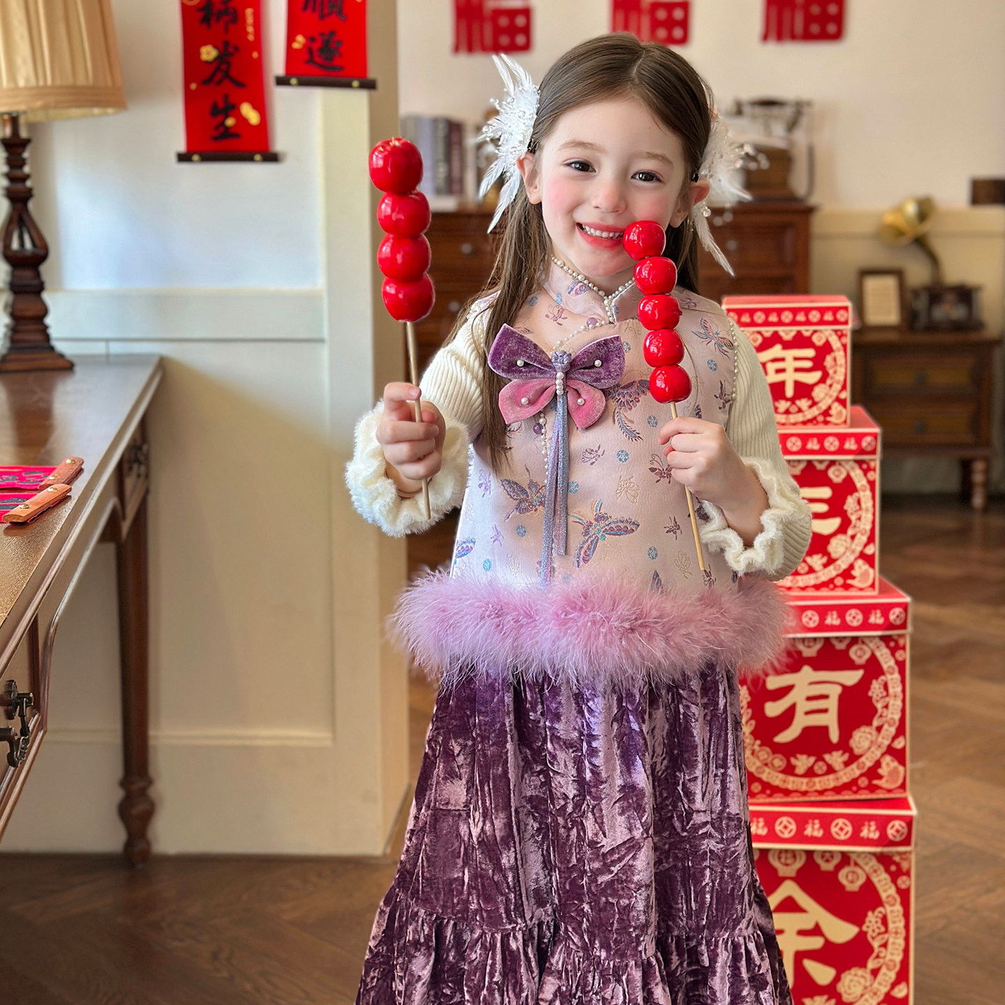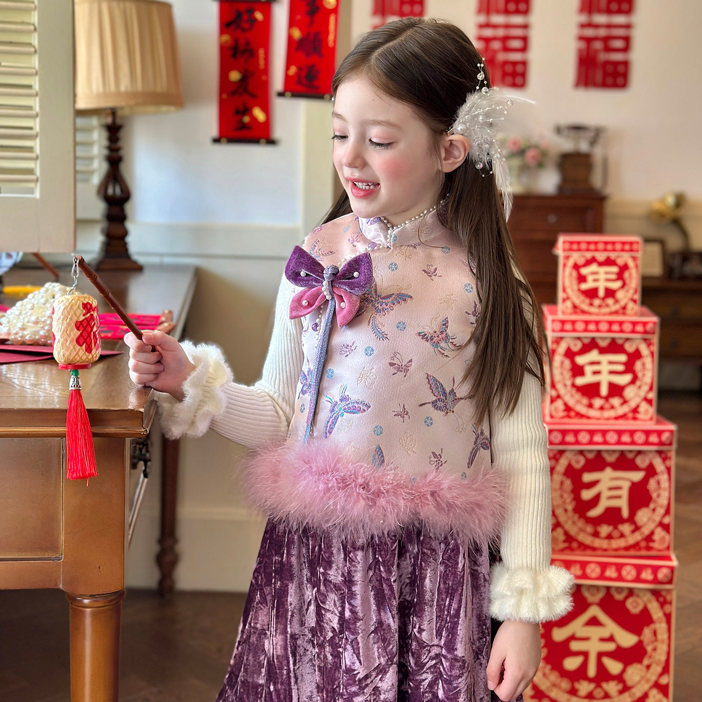 📚 栀了成长记童装女童国风唐装上衣2025冬季儿童新中式蝴蝶夹棉马甲