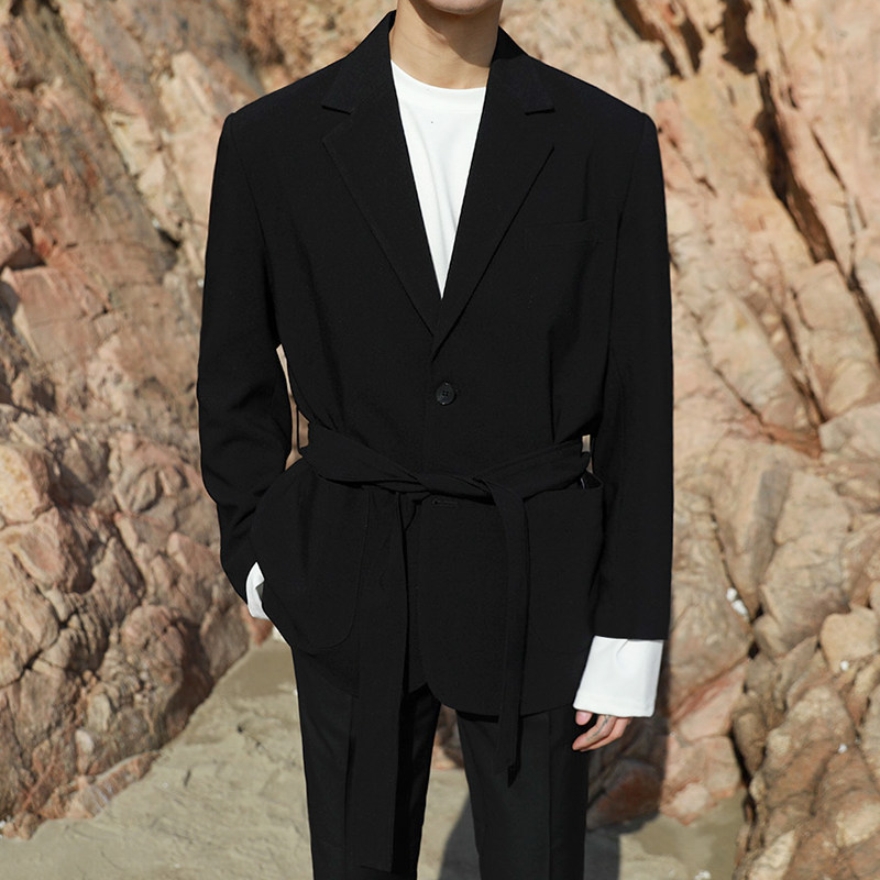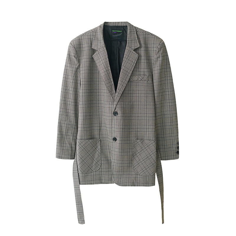 📚 ins格子西装外套男韩系潮流复古千鸟格休闲宽松腰带双排扣英伦风