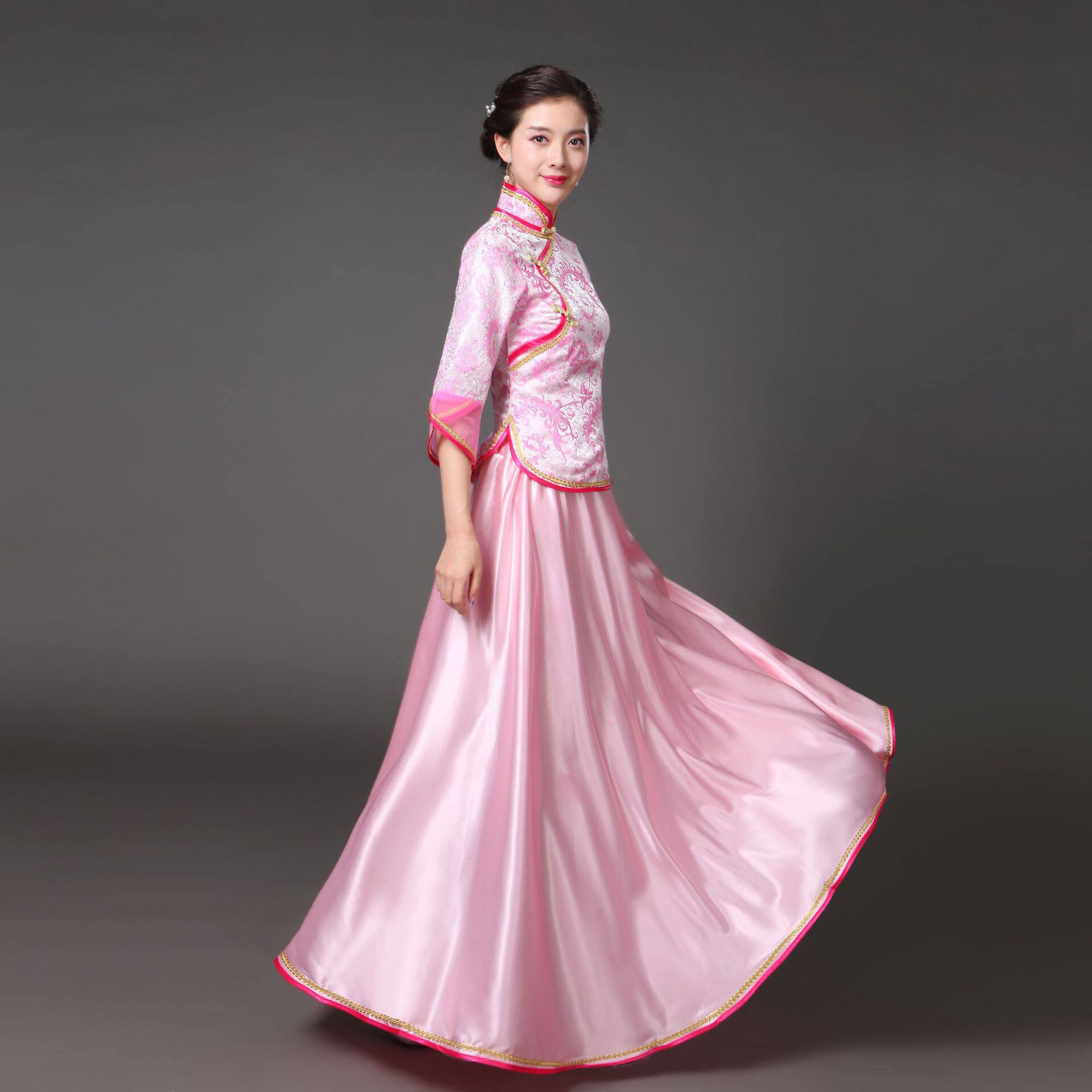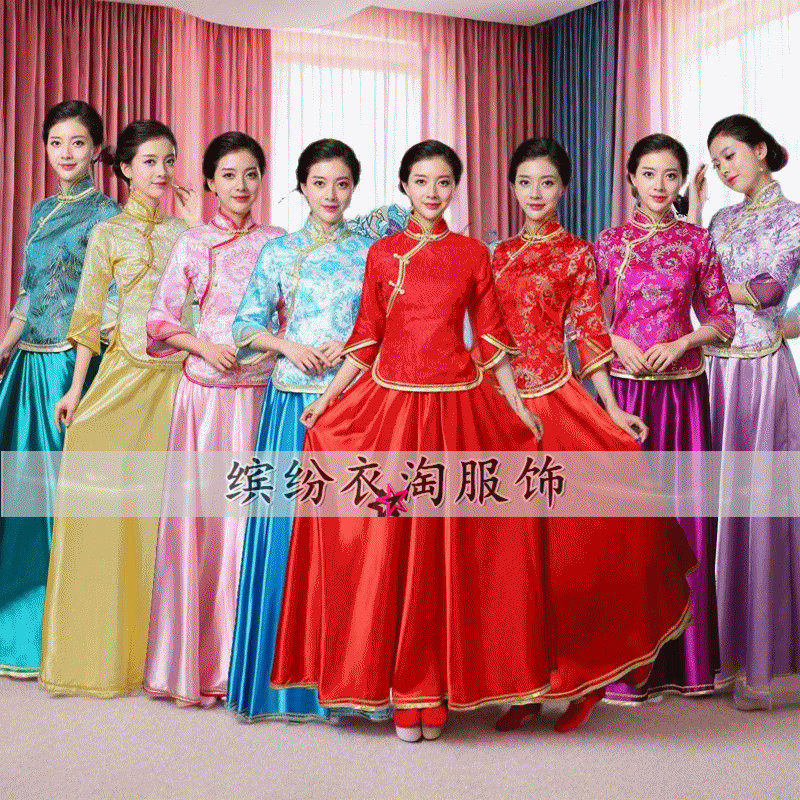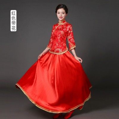 📚 中式婚礼新娘伴娘服宴会太太晚礼服主持人司仪旗袍裙年会演出服女