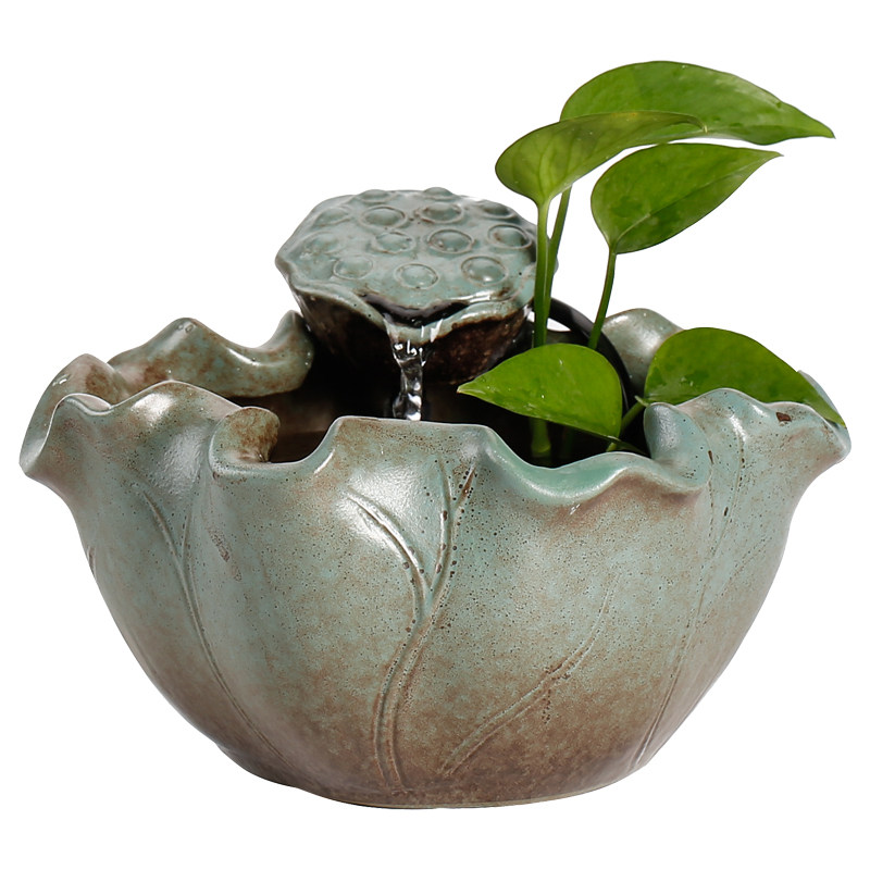 📚 陶瓷家居茶桌荷花流水招财摆件接待室茶台装饰礼品桌面加湿器景观