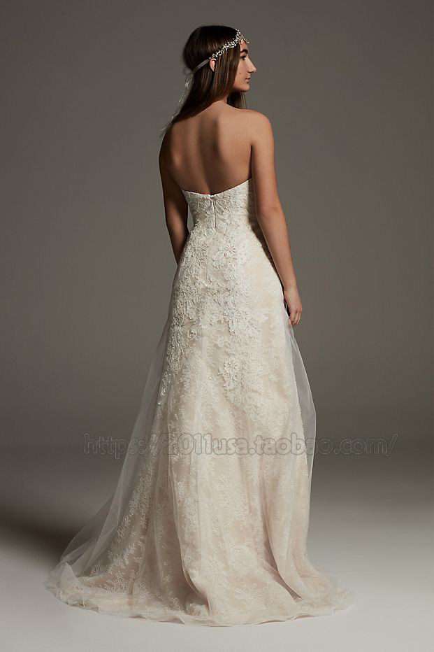 📚 2025 01美国正品代购White by Vera Wang新娘蕾丝抹胸婚纱礼服女