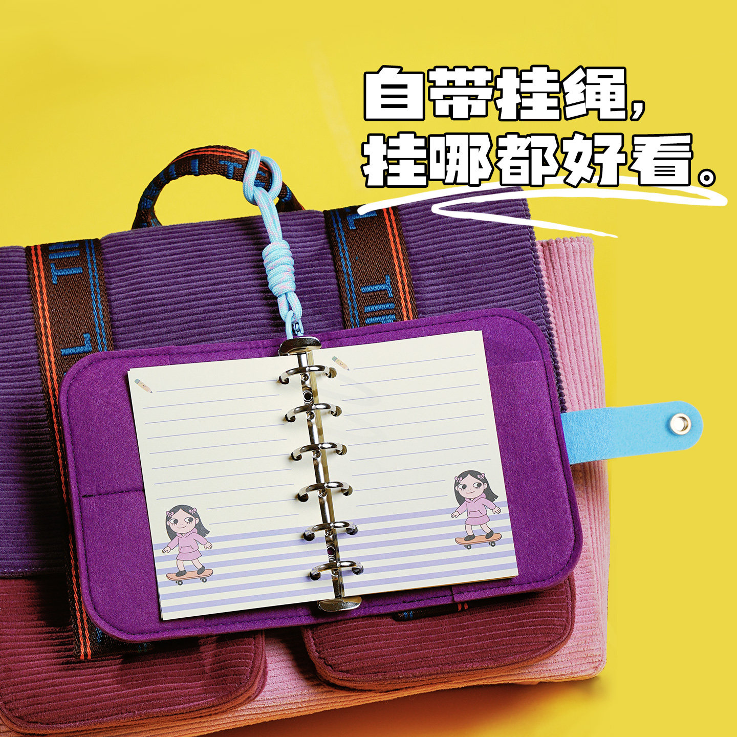 📚 趁早A7活页手册rarakiera卡通图案毛毡魔术贴便携可拆卸口袋本加厚活页替芯