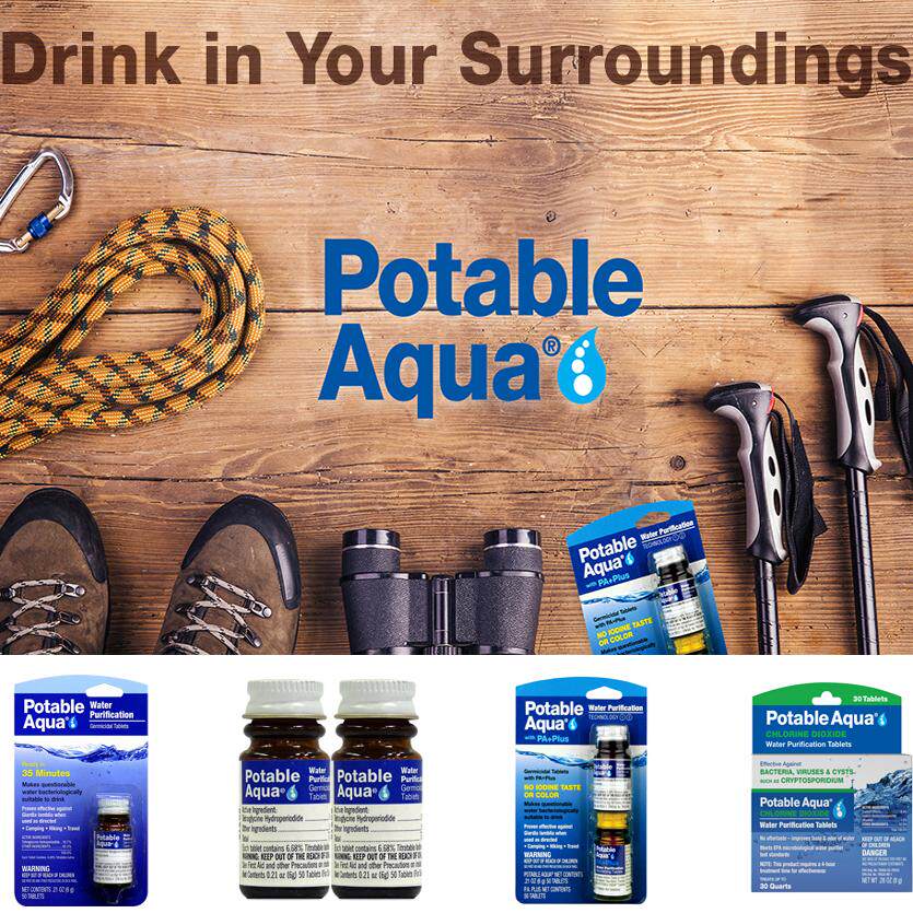 📚 Potable Aqua带PAPlus的便携饮用水净化片 50片 露营远足可制25升