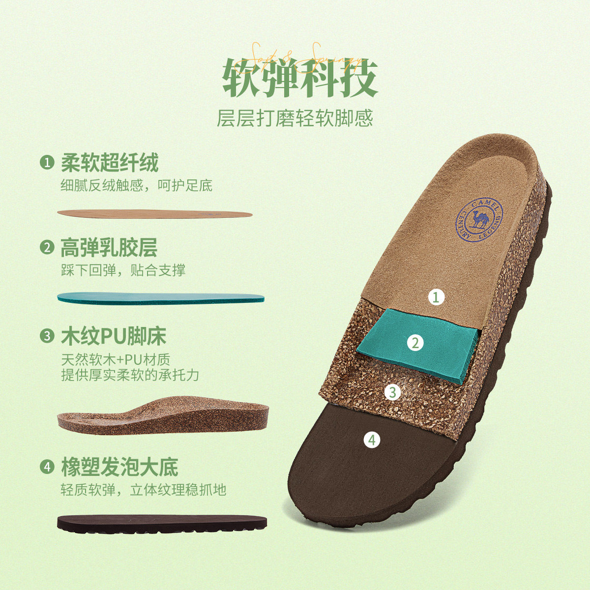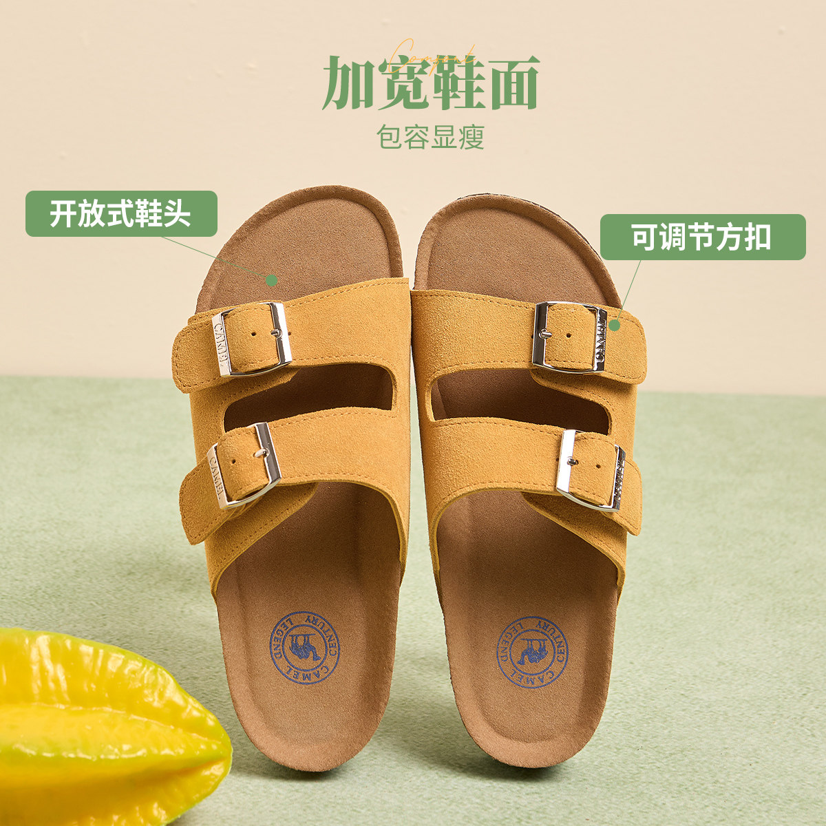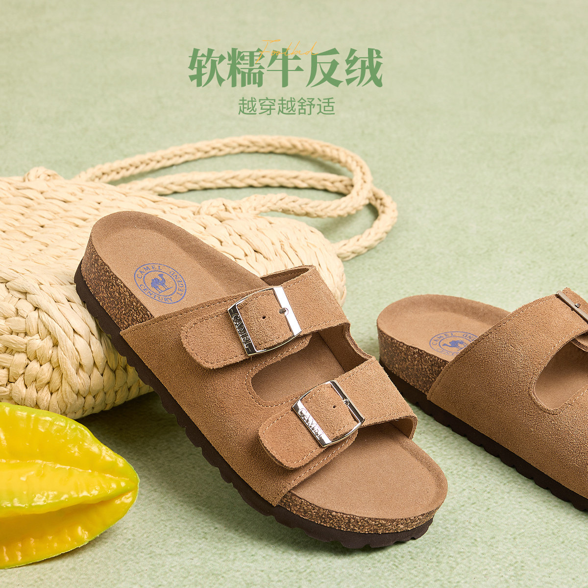 📚 骆驼女鞋2026年新款平底鞋休闲舒适透气百搭复古软木鞋勃肯凉拖鞋