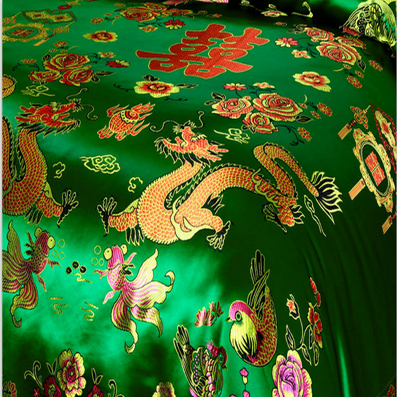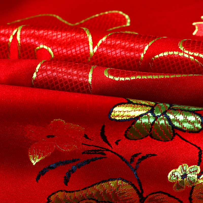 📚 中式婚庆杭州丝绸织锦缎被面子结婚百子呈祥双喜软缎大红喜被包邮