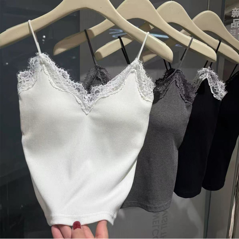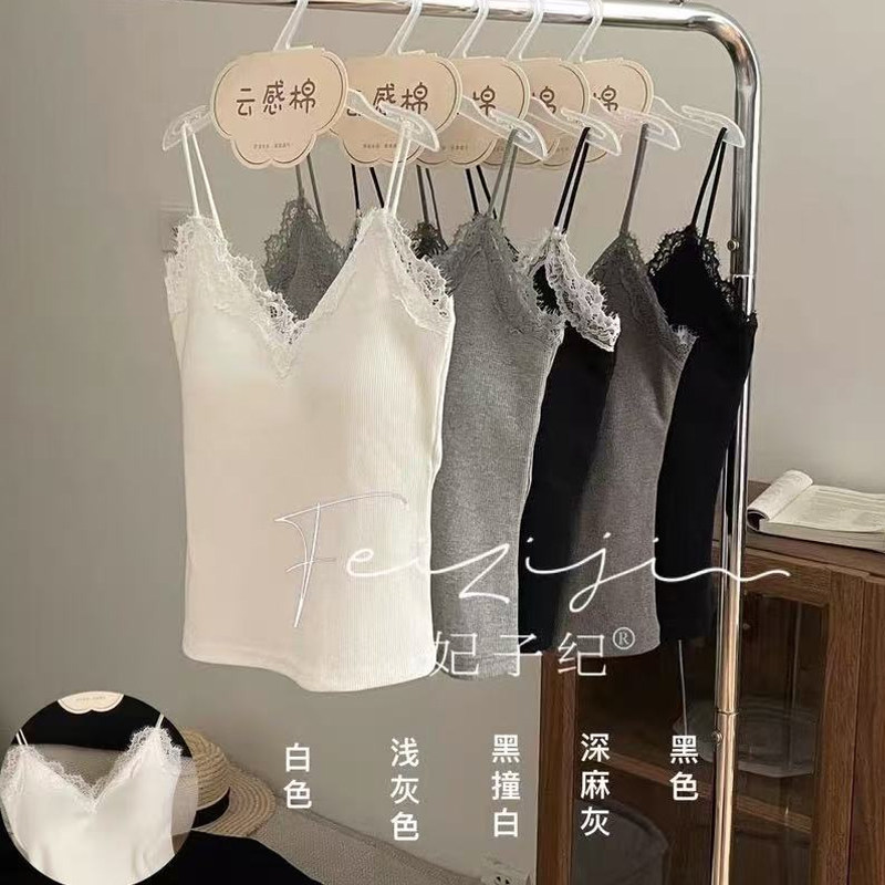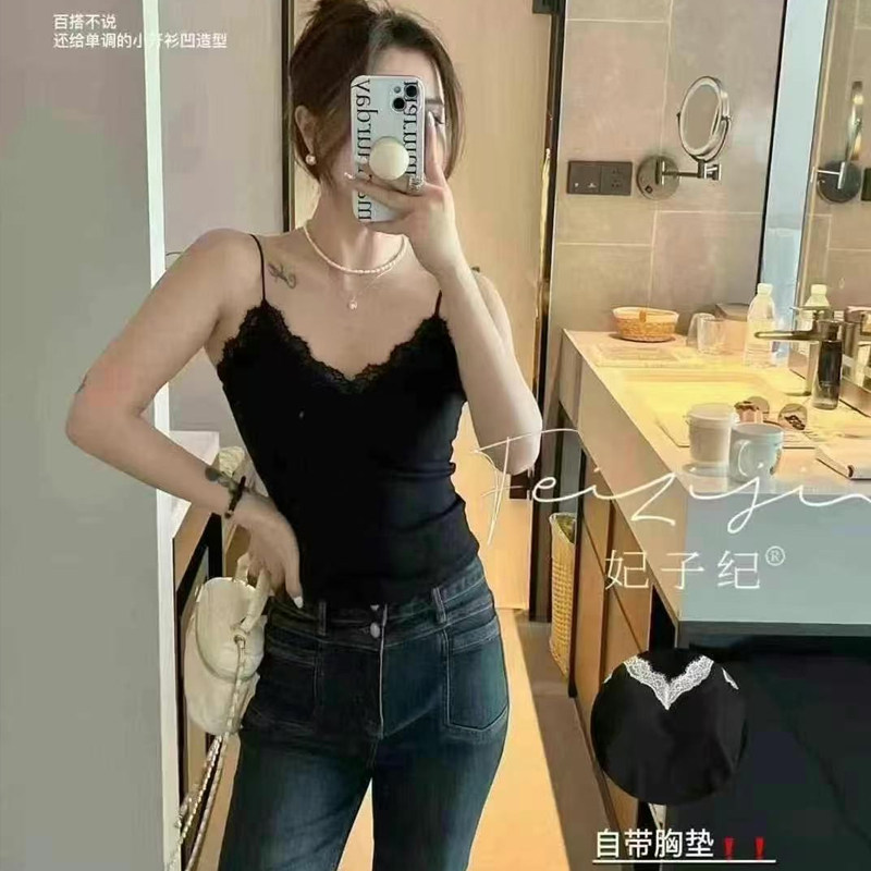 📚 妃子纪8111云感棉蕾丝花边吊带背心女内搭一体式带胸垫美背外穿夏