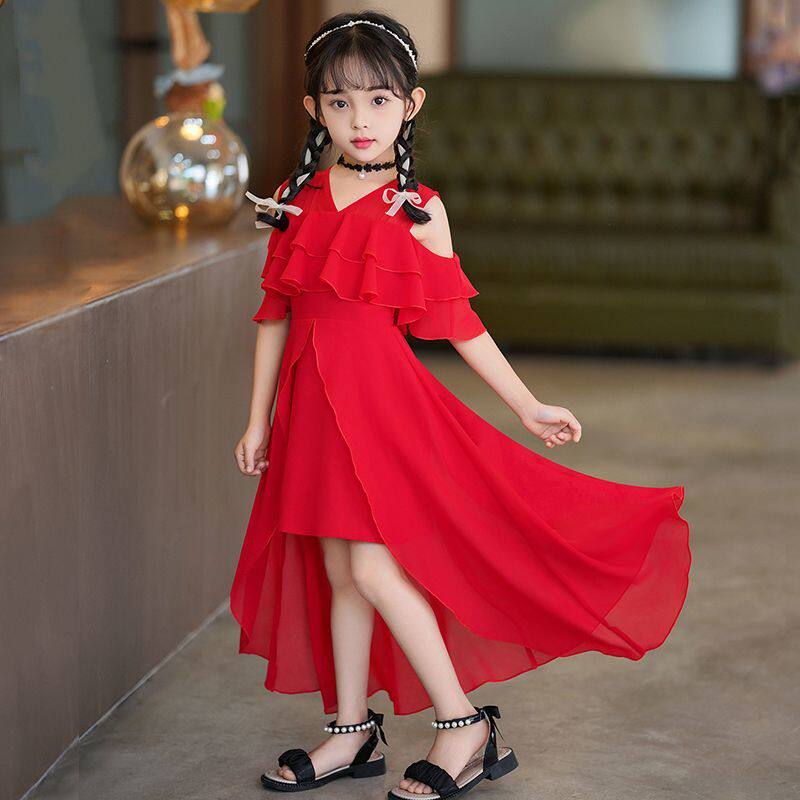 📚 女童连衣裙夏季2026新款洋气小女孩雪纺裙露肩韩版中大童沙滩裙子