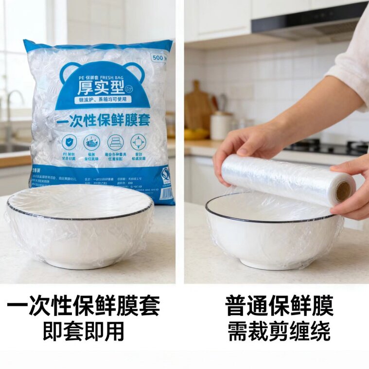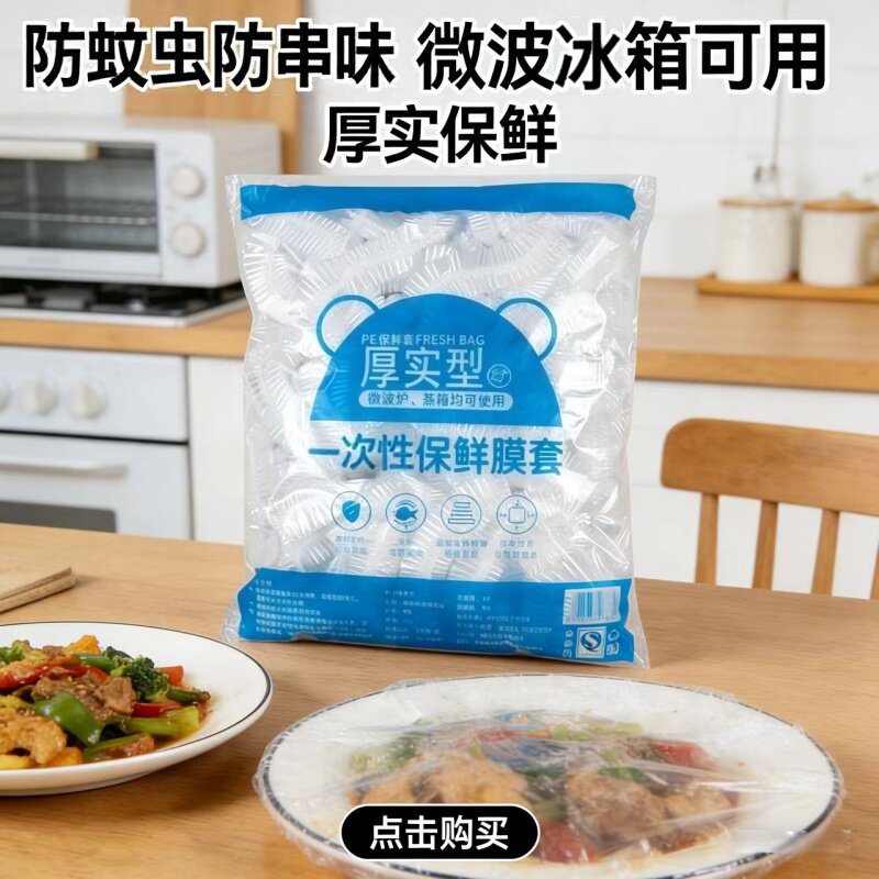 📚 1000只一次性防尘保鲜膜套防虫防串味冰箱可用剩饭菜水果保鲜套