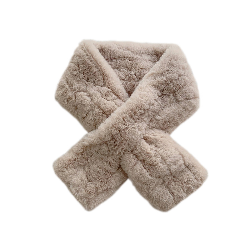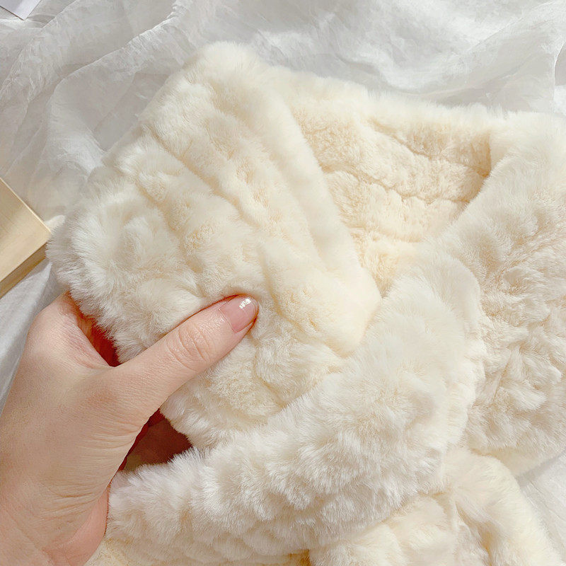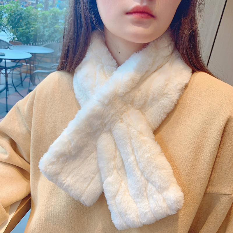 📚 敲软糯韩国新款仿獭兔毛毛绒围巾女冬季百搭加厚保暖交叉毛领围脖
