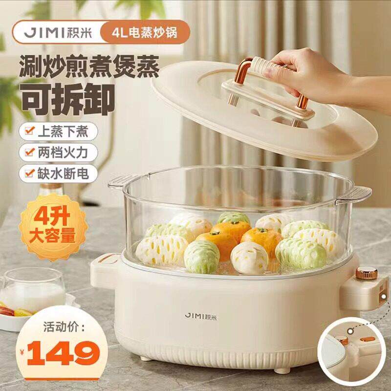 📚 积米4升电蒸炒锅家用炒菜多功能不粘火锅宿舍蒸煮炒一体锅大容量