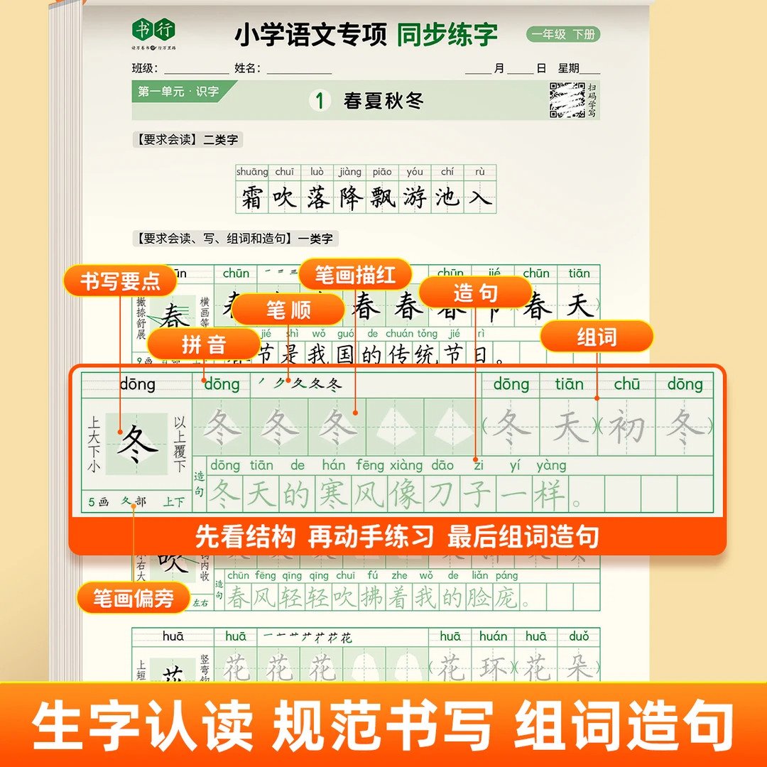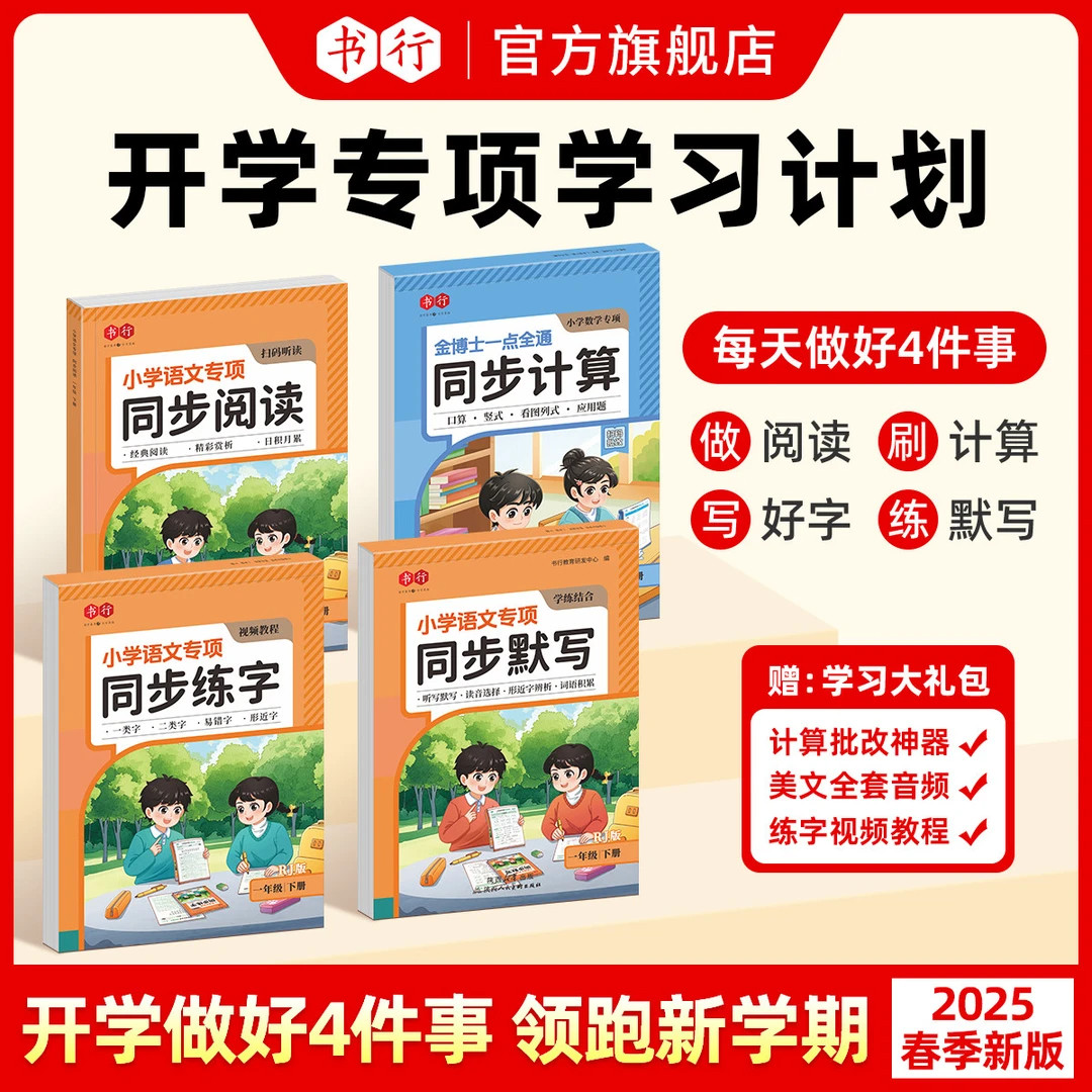 📚 书行【开学专项训练】1-6年级下册开学阅读练字帖默写口算计算打卡计划26新人教版语文同步字帖默写每日一练小学生专用阅读理解