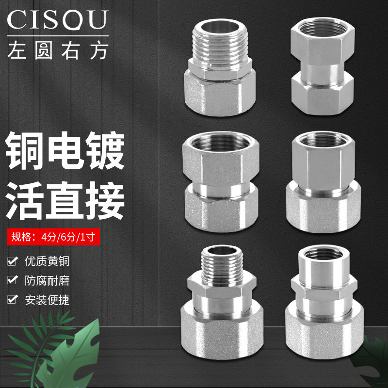 📚 4分内外丝6分双内丝加长活接1寸变径黄铜电镀异径延长弯头活直接
