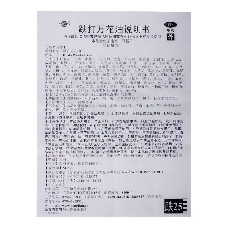 📚 包邮】恒健跌打万花油35ml消肿止痛油铁打损伤扭伤轻度水火烫伤药