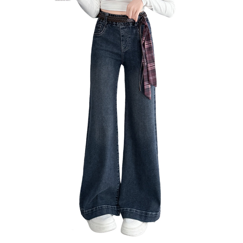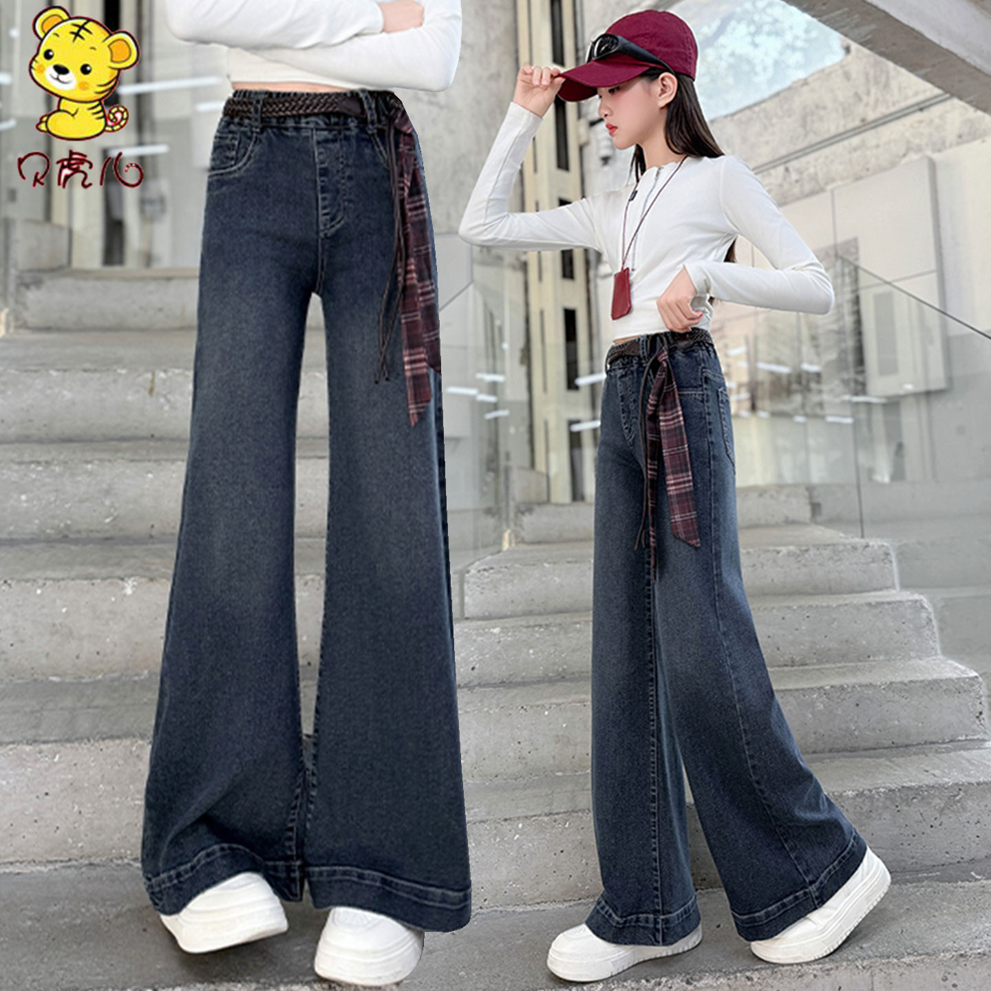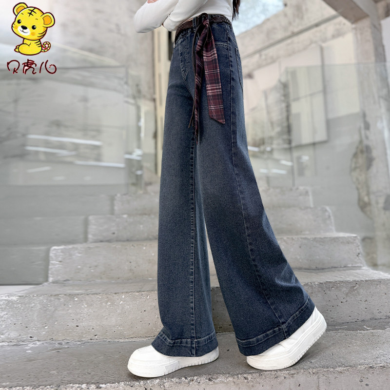 📚 女童裤子加绒秋冬外穿2025新款中大童女孩休闲冬季儿童牛仔阔腿裤
