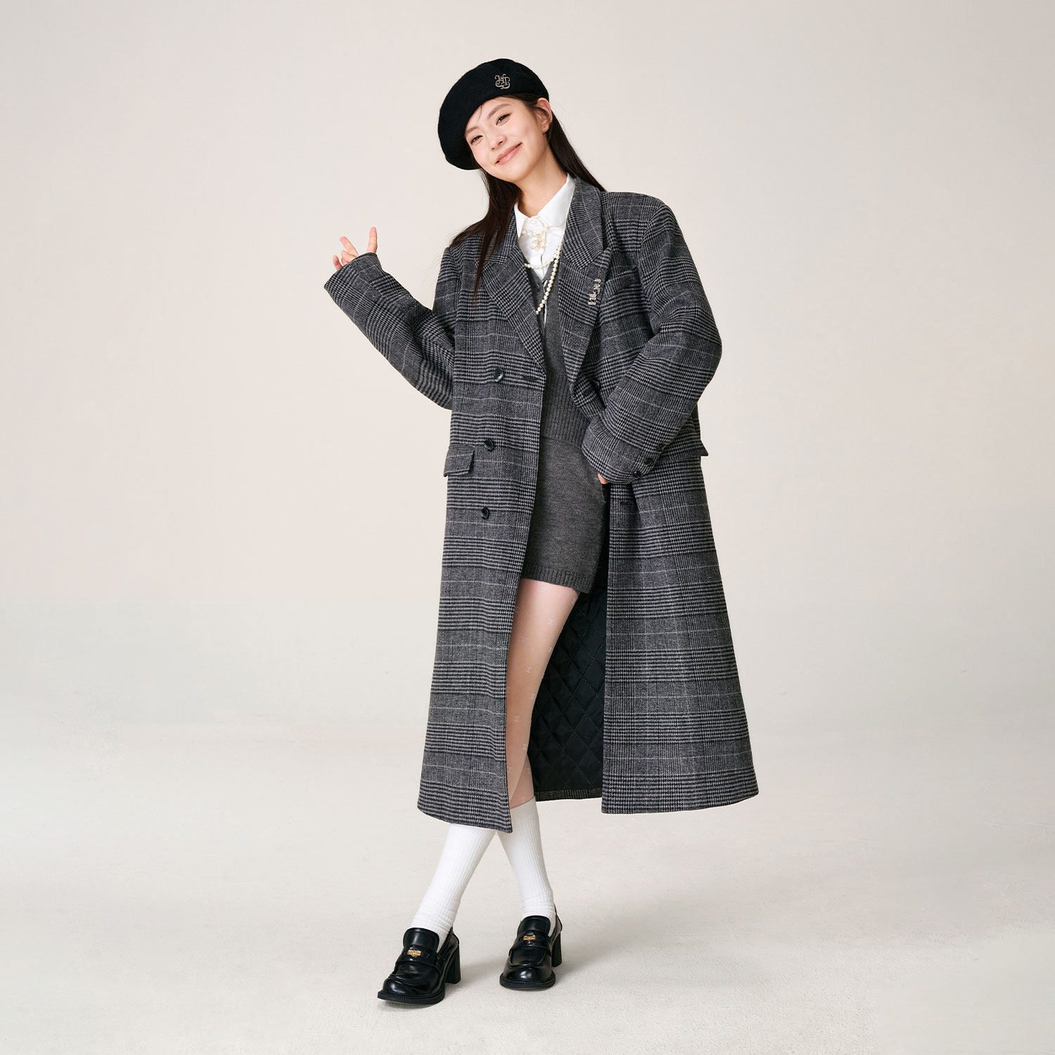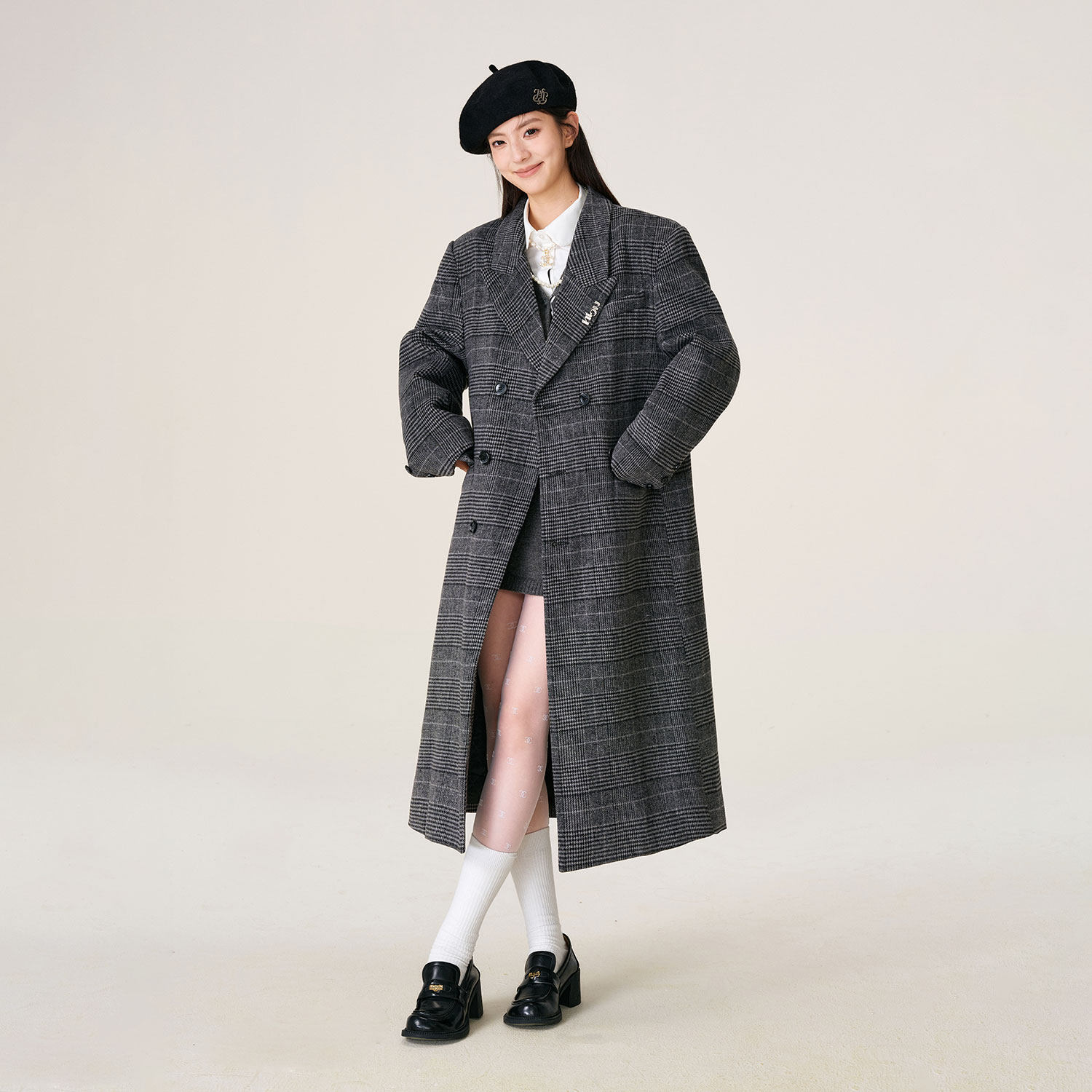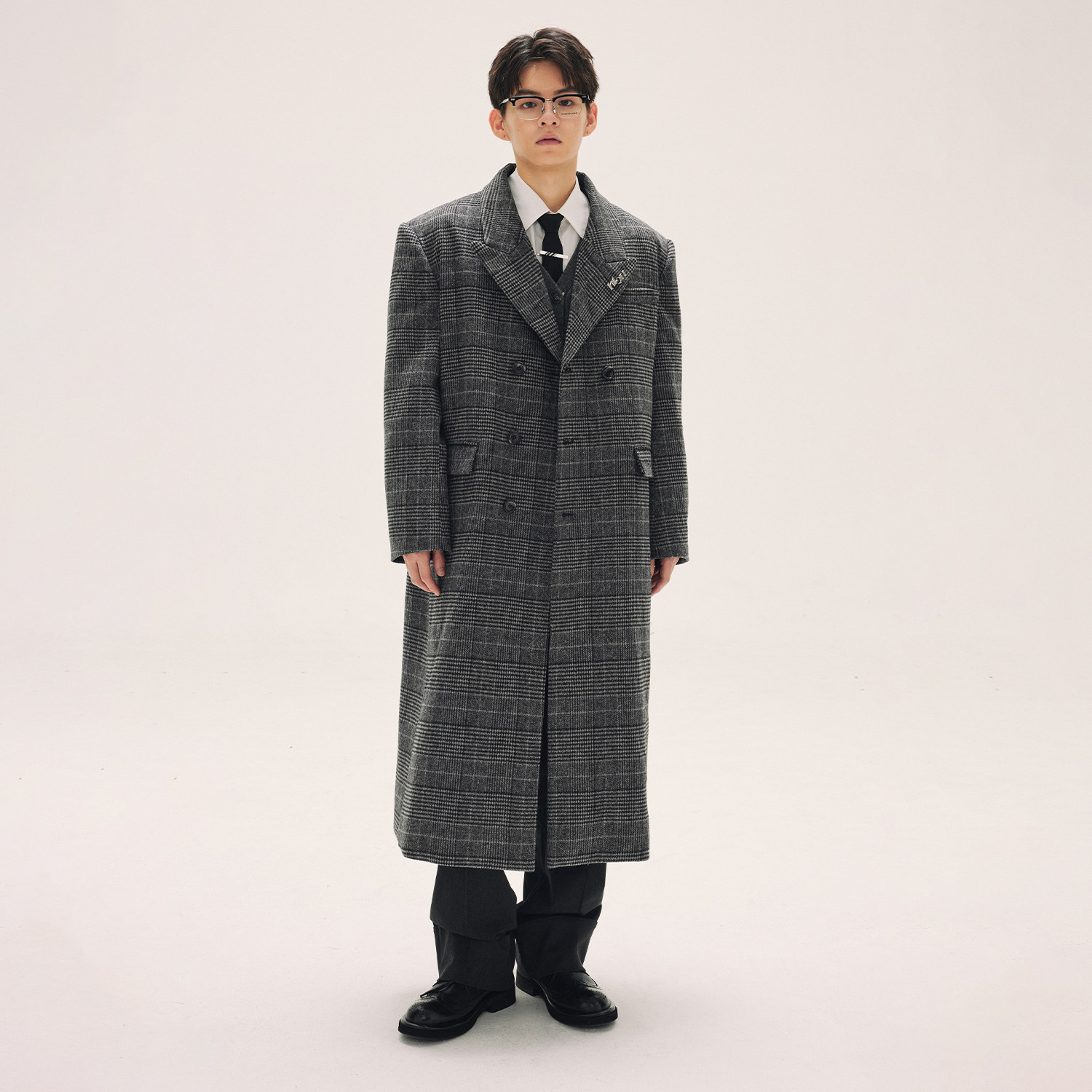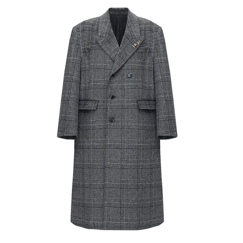 📚 HTCU 克利夫顿 廓形剪裁格纹毛呢中长款大衣呢子风衣外套男