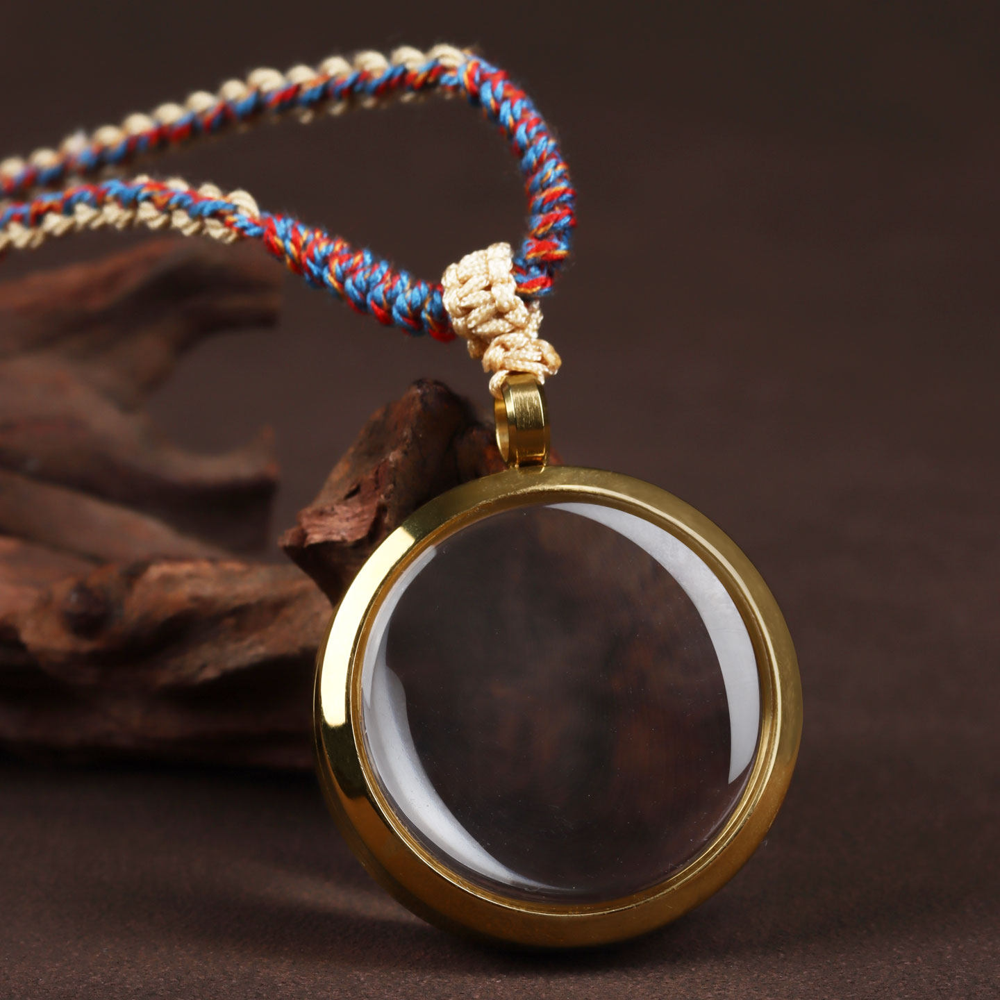 📚 天然白水晶嘎乌盒吊坠防水圆形朱砂空心盒可打开楞严咒项链挂件