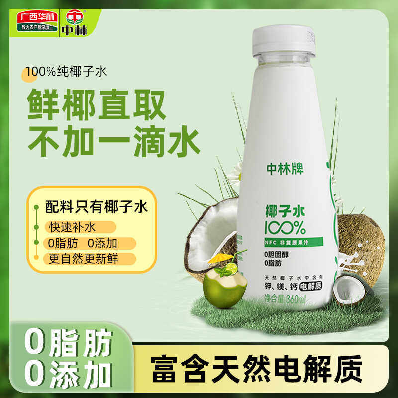 📚 中林100%椰子水果汁饮料天然电解质水0脂肪椰青水NFC饮品
