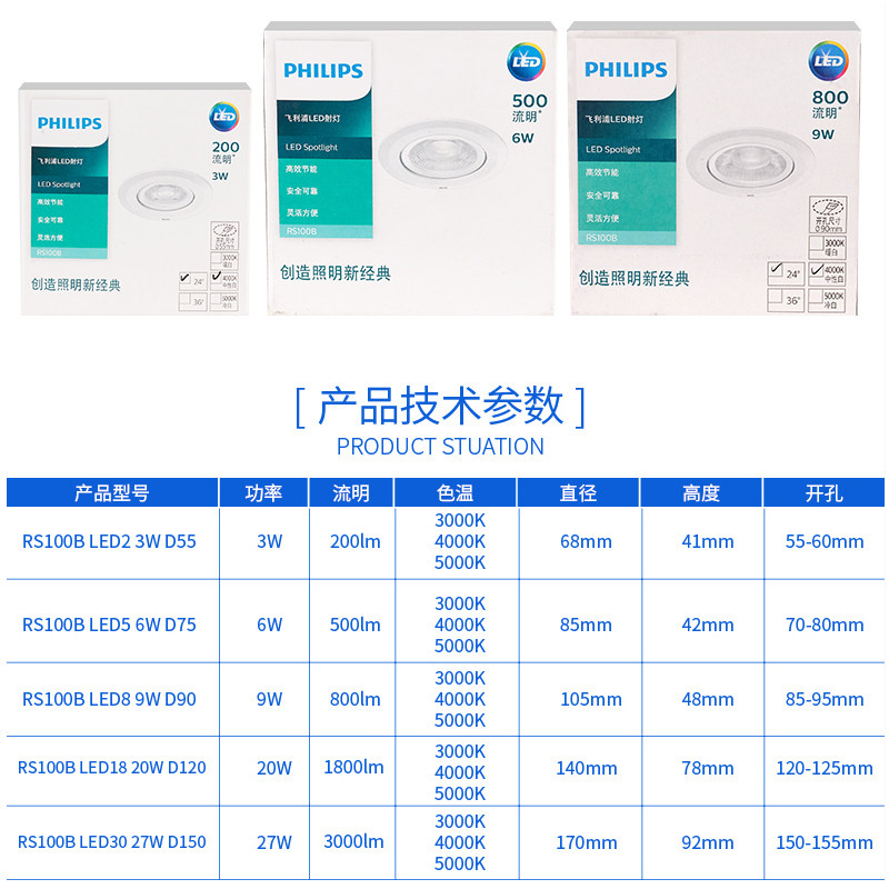 📚 飞利浦led射灯天花灯超亮牛眼灯嵌入式RS100B客厅吊顶走廊过道灯