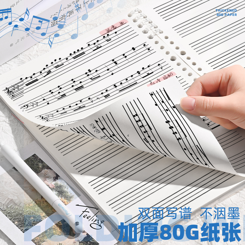 📚 五线谱本本子B5乐谱大间距活页可拆卸宽距专业儿童初学者专用音乐笔记本高颜值乐理钢琴架子鼓作曲小提琴乐本