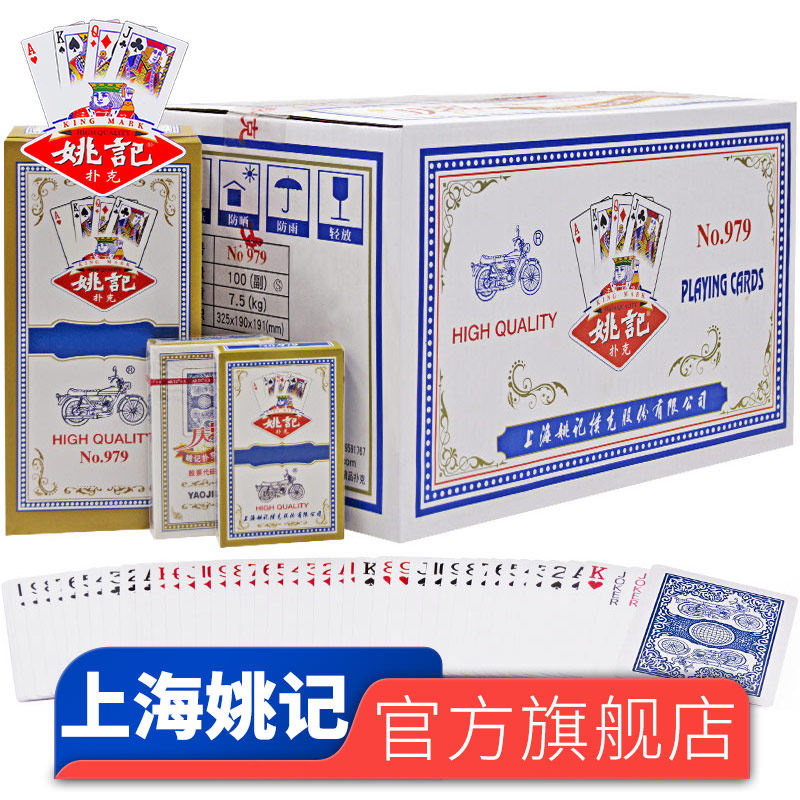 📚 姚记扑克牌官方旗舰店正品纸牌斗地主棋牌室加厚加硬整箱批发 979