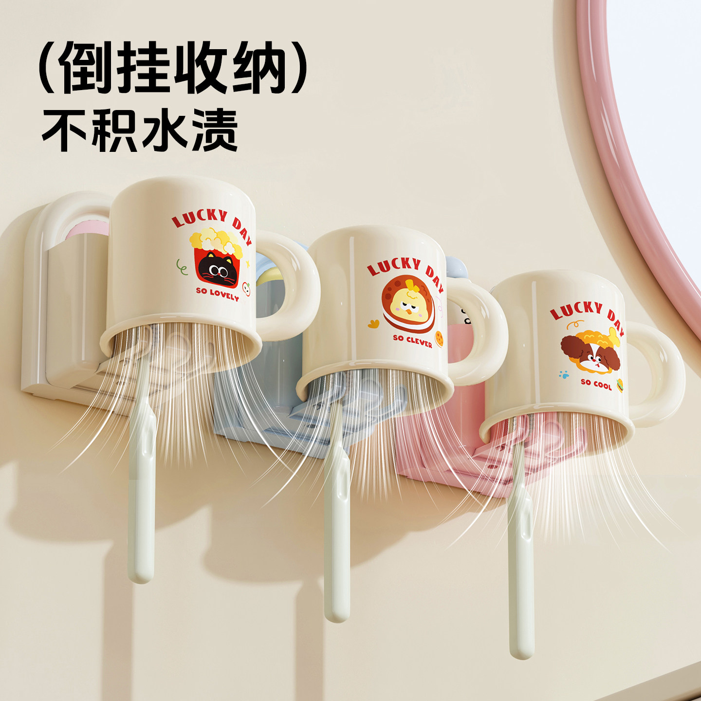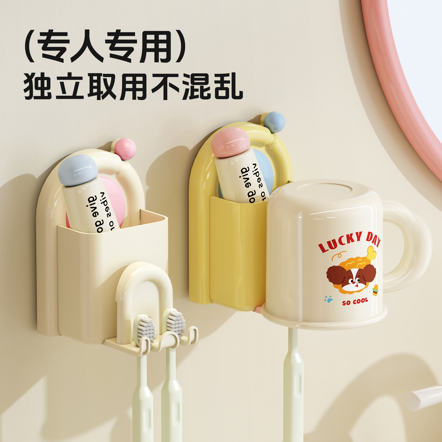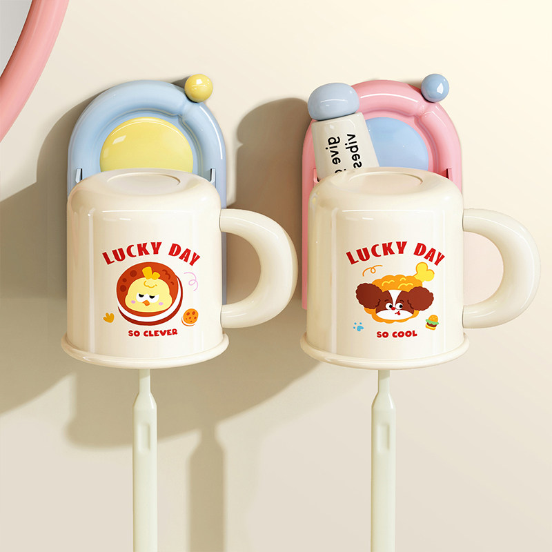 📚 多巴胺牙刷置物架漱口杯刷牙杯子卫生间壁挂式免打孔洗漱杯套装
