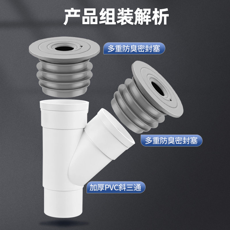 📚 洗衣机下水管三头通50管排水三通接头厨房y型排水管下水道分水器
